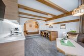 Badezimmer mit Dusche/WC, Kabel TV (Flat TV), Radio, Telefon, WLAN, Safe, Haarföhn, Balkon zur Ostseite, Panoramablick ins Tal, selbstverständlich komplett mit Bettwäsche und Handtücher. Größe: ca. 37-39 m².