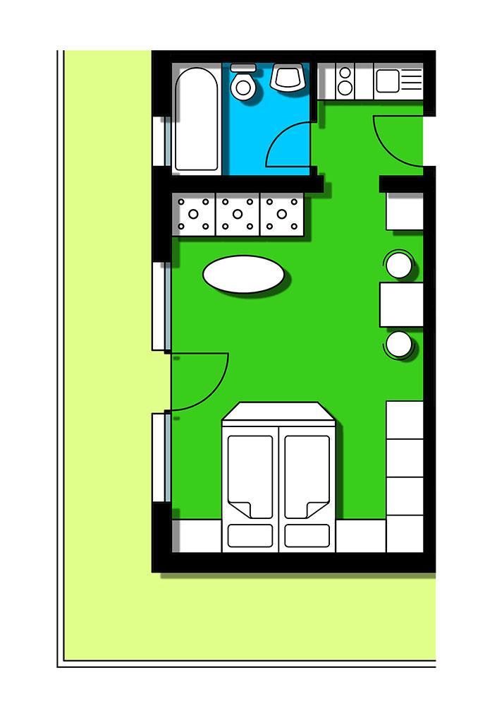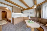 Modern und gemütlich ausgestattetes Appartement mit Wohnnische, Doppelbett getrennt vom Wohnraum, kleine Kochnische mit Zweiplattenherd
