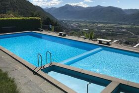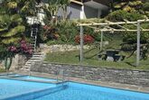 Im Außenbereich des Hauses, das sich am Waldrand in einer gepflegten Gartenanlage befindet, erwartet Sie ein großer Außenpool mit Liegewiese, Granitsteintisch und Pergola. Hier stehen Ihnen zwei Liegestühle zur Verfügung, von wo aus Sie einen überwältigenden Ausblick auf den See und die Berge genießen können. Der Poolbereich lädt Sie ein, die Sonnentage voll auszukosten und in vollen Zügen zu genießen.