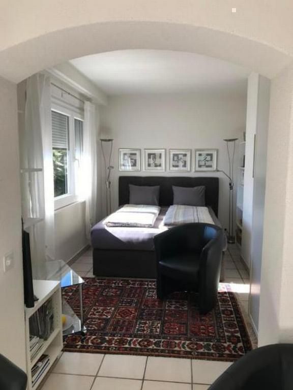 Im Inneren erwartet Sie eine geschmackvoll eingerichtete Wohnung, die mit allen notwendigen Annehmlichkeiten für einen sorgenfreien Aufenthalt ausgestattet ist. Der Wohn- und Essbereich führt direkt auf den gemütlichen Balkon. Ein modernes Boxspringbett im Schlafbereich, der mit einem Rundbogen vom Rest des Raumes getrennt ist, verspricht erholsamen Schlaf. Zudem ist das Schlafzimmer mit einem Kleiderschrank und Fernseher für Ihr Entertainment ausgestattet.