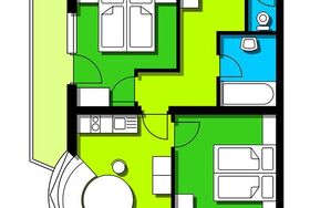 Appartement mit 2 Doppelschlafzimmer, Wohnraum mit kleiner Kochnische mit Zweiplattenherd, Spüle, Kühlschrank, Geschirrspüler, Kaffeemaschine, ausreichend Geschirr. Vorraum, Badezimmer mit Dusche, WC separat, Kabel-Flat-TV mit Radio, Telefon, Haarföhn, Safe, Telefon, W-Lan, Bettwäsche und Handtücher. Balkon zur Ostseite und Südseite, Panoramablick ins Tal. Größe ca. 52 m².