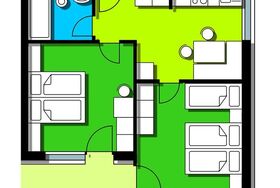 Appartement mit 2 getrennten Schlafzimmern, Badezimmer mit Dusche/WC, Wohnraum mit kleiner Kochnische mit Zweiplattenherd