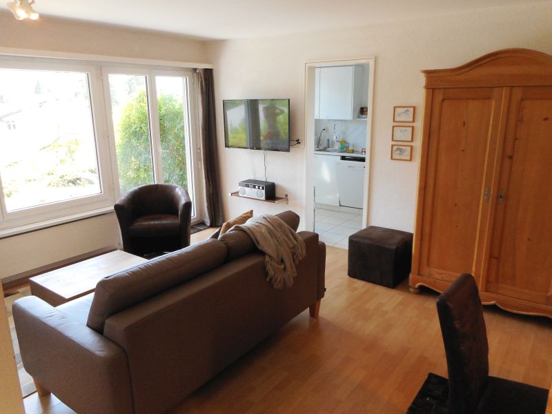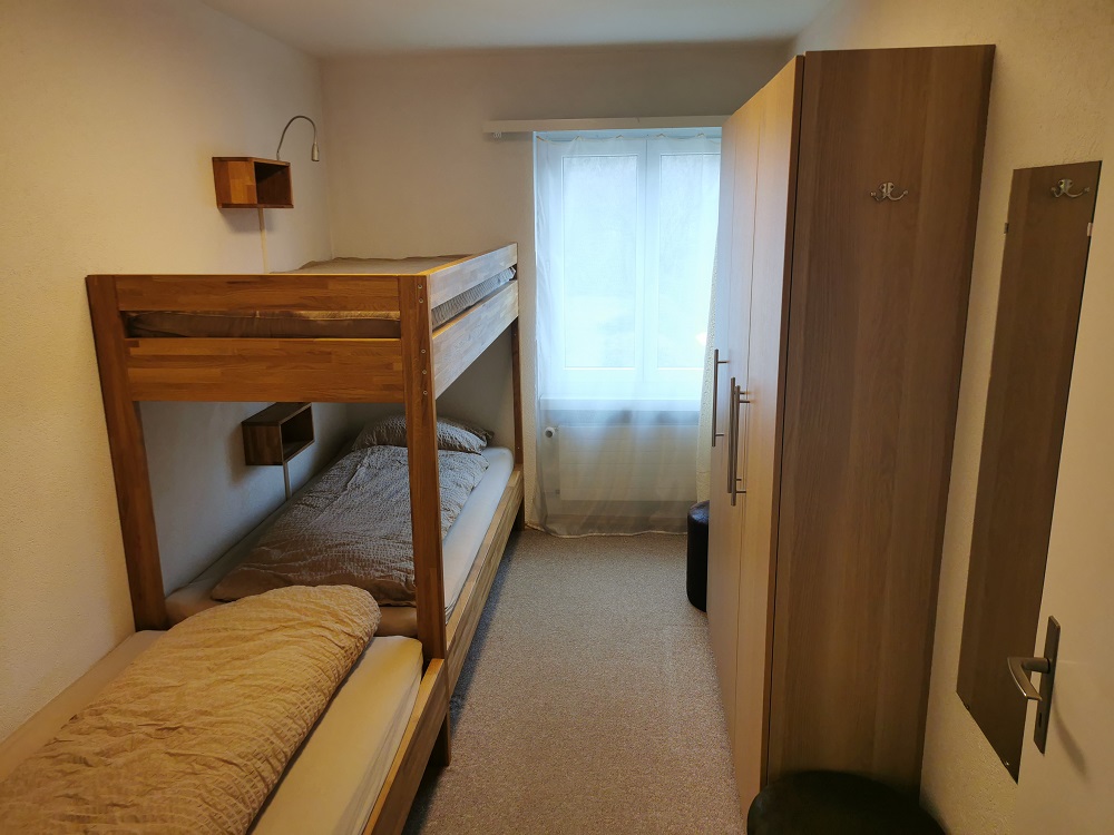 3 Zimmerwohnung, 60 qm (5 Betten) in wenig bewohntem Mehrfamilien-Ferienhaus an sonniger Lage Abseits des Durchgangsverkehrs. Aus der Wohnung freie Panoramasicht auf die Berge. Grosse, gedeckte Terrasse gegen Süden. Auf der gleichen Etage: separater, abschliessbarer Abstellraum für Koffer und teure Sportgeräte. Skiraum mit Schuhtrockner, Waschmaschine, Tumbler und Gebläsetrockner zur Mitbenutzung. 4 Minuten Fussweg zur Busstation, 5 Minuten ins Dorfzentrum und 7 Minuten zum See. Reservierter Parkplatz. Jugendliche nur in Begleitung einer Erwachsenen Person. Keine Haustiere.