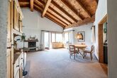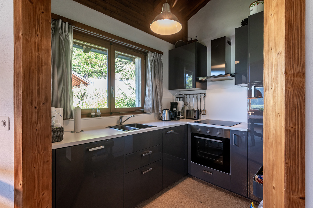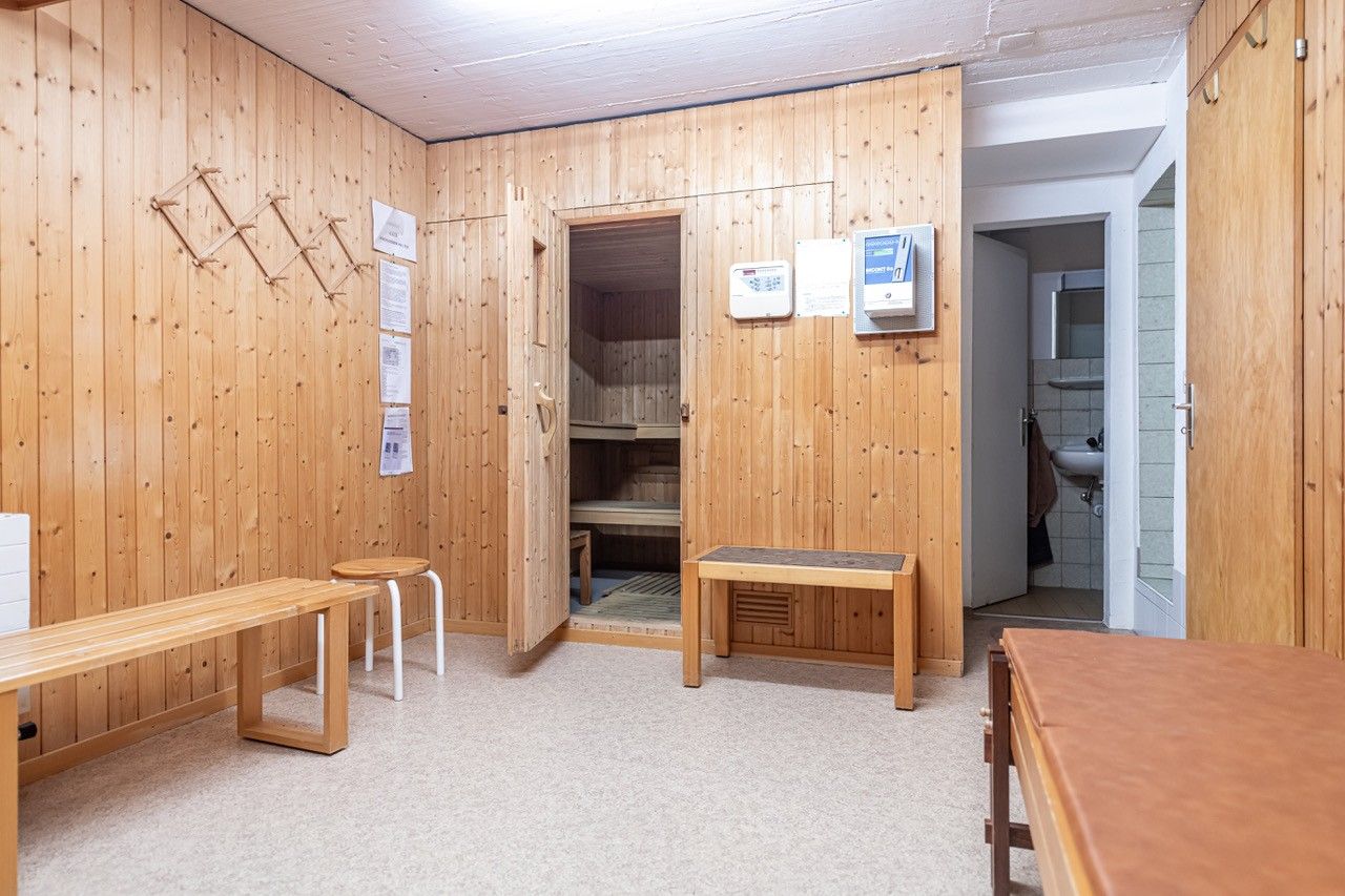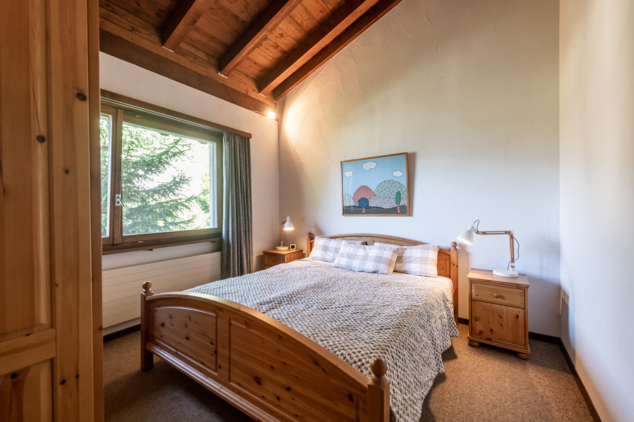 Grosser Wohn/Essraum mit Giebeldach modern und gemütlich eingerichtet, Flur, 1 Doppelschlafzimmer und 1 Zimmer mit grossem Etagenbett (90 x 200). Geschlossene Küche mit Geschirrspüler, Bad. Radio, TV, Cheminée und Waschmaschine vorhanden. Sauna und Waschküche. Bad mit Badewanne. Parkplatz, Balkon, ruhige Lage.