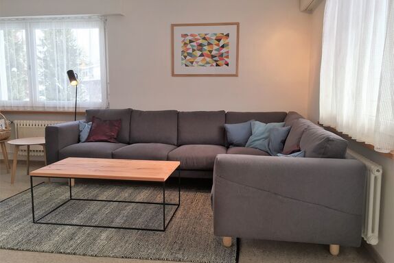 Gemütliche 3.5 Zimmerwohnung (ca. 80 m2) im 1. OG eines Mehrfamilienhauses mit grossem Garten (ca. 3500 m2) an sehr sonniger und ruhiger Lage in Flims Unterwaldhaus. Nur ca. 150 m zum gratis Ski Shuttle Bus (während der Hochsaison) und knapp 1 km bis zu den Bergbahnen und dem Dorfzentrum mit Geschäften, Post, Apotheke, Restaurants etc.. Wald und Caumasee in kurzer Gehdistanz erreichbar. Ideal für Familien und Naturfreunde.Wohnung im 1. Stock mit sonnigem Südbalkon. Zwei Schlafzimmer (eines davon mit Doppelbett, eines mit zwei Einzelbetten). Grosser Wohn-/Essbereich mit offener, gut ausgestatteter Küche (z.B. Geschirrspülmaschine, Dampfkochtopf, Mikrowelle, Toaster, Racletteofen, Fondue-Caquelon etc.). Wohnzimmer mit grossem, gemütlichem Ecksofa sowie Radio und TV. Kleines Badezimmer mit Badewanne. WC separat. WICHTIG: Bad und WC werden im November 2024 komplett renoviert. Das neue Badezimmer verfügt dann über eine Dusche (ohne Badewanne). Bilder werden aktualisiert sobald verfügbar.