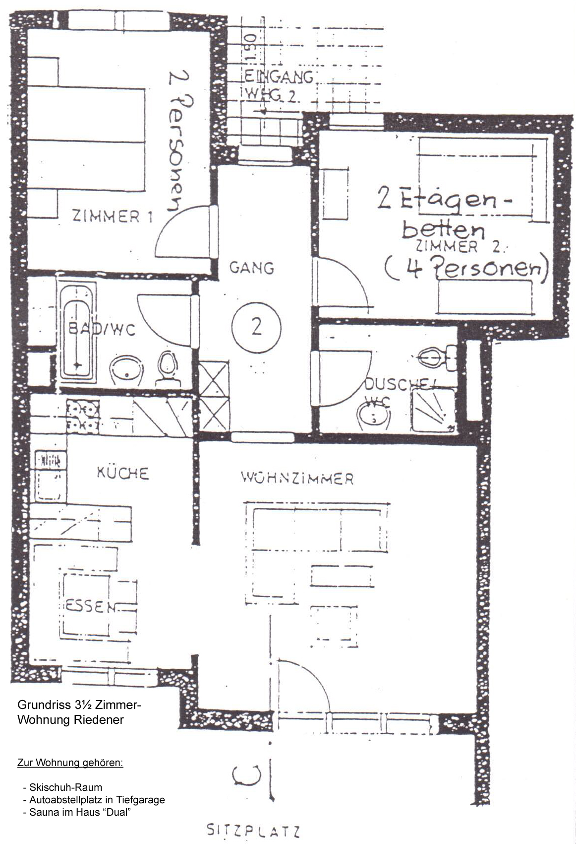 Bettwäsche, Endreinigung und ein Set Frottéewäsche pro Person sind im Gesamtpreis enthalten, ebenso die Kurtaxen. Hunde sind in dieser Wohnung auf Anfrage erlaubt und werden mit 10 CHF/Nacht vor Ort verrechnet. Ebenso wird die Benützung der Sauna am Ende des Aufenthalts mit 12 CHF/Benützung vor Ort abgerechnet.