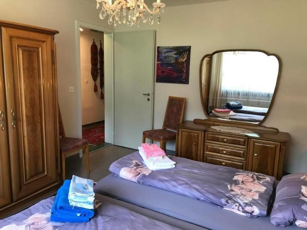Schlafzimmer im Zürcher Barock Stil mit Doppelbett. Küche mit Tisch und 2 Stühle, Abwaschmaschine , separater Tiefkühlschrank. Wohnzimmer mit Essecke und Sofaecke. Der Balkon ist ein Wintergarten. Weiterhin gehören ein Garagenplatz, ein Badezimmer und ein separates WC zur Wohnungsausstattung.Sat-TV Radio