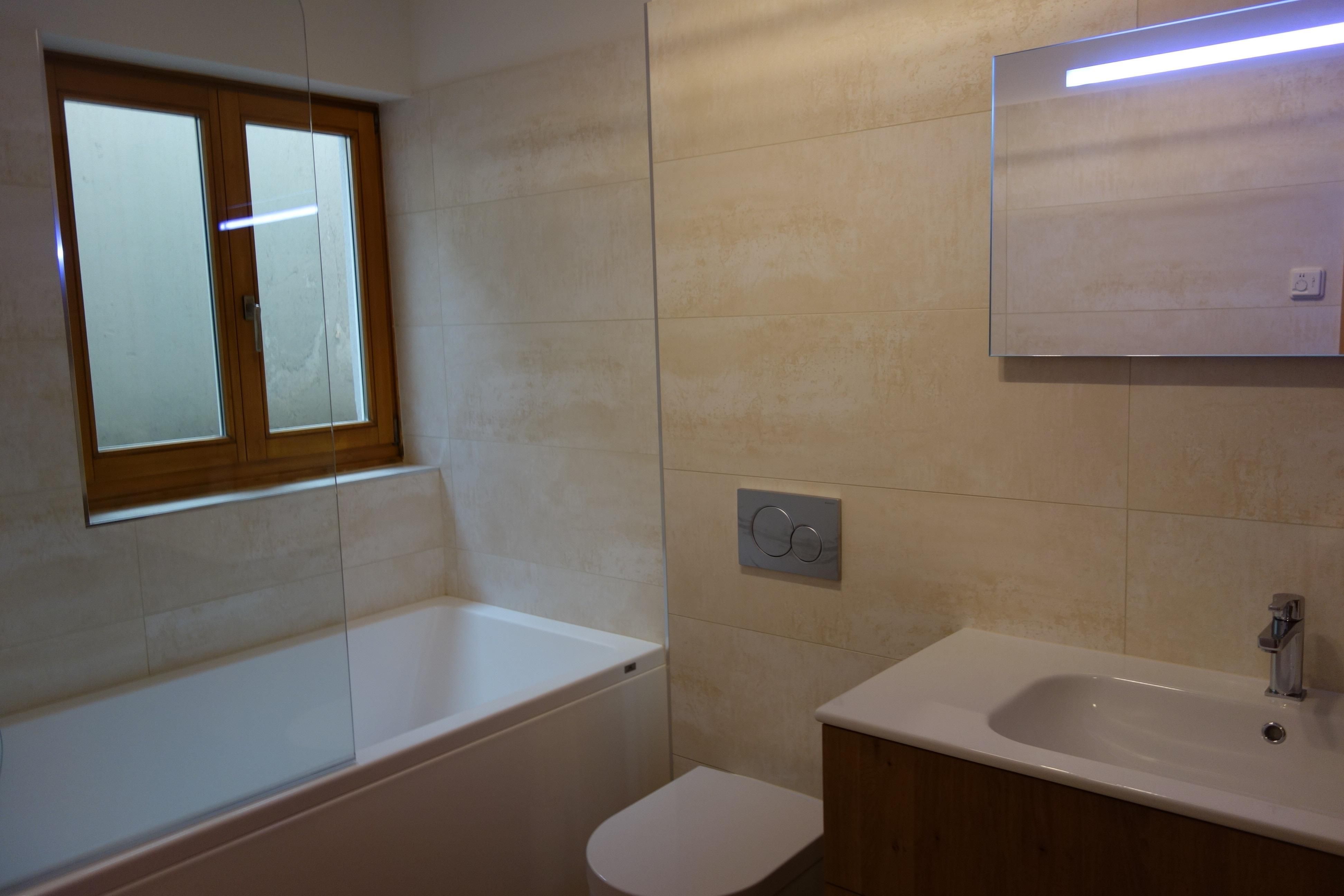 ° Bad/WC mit grosser Badewanne, Handtuchradiator, Fussbodenheizung und Tageslicht