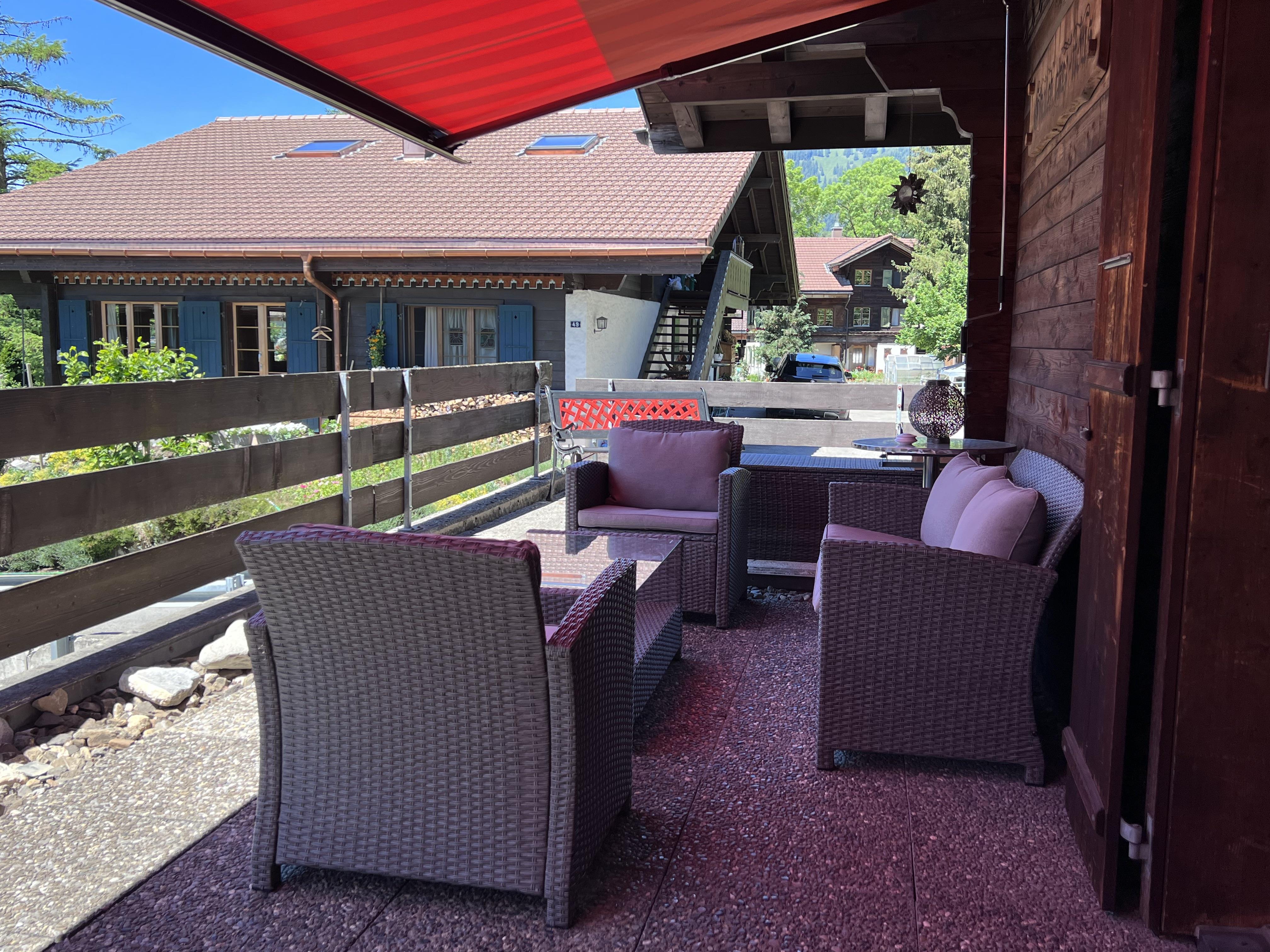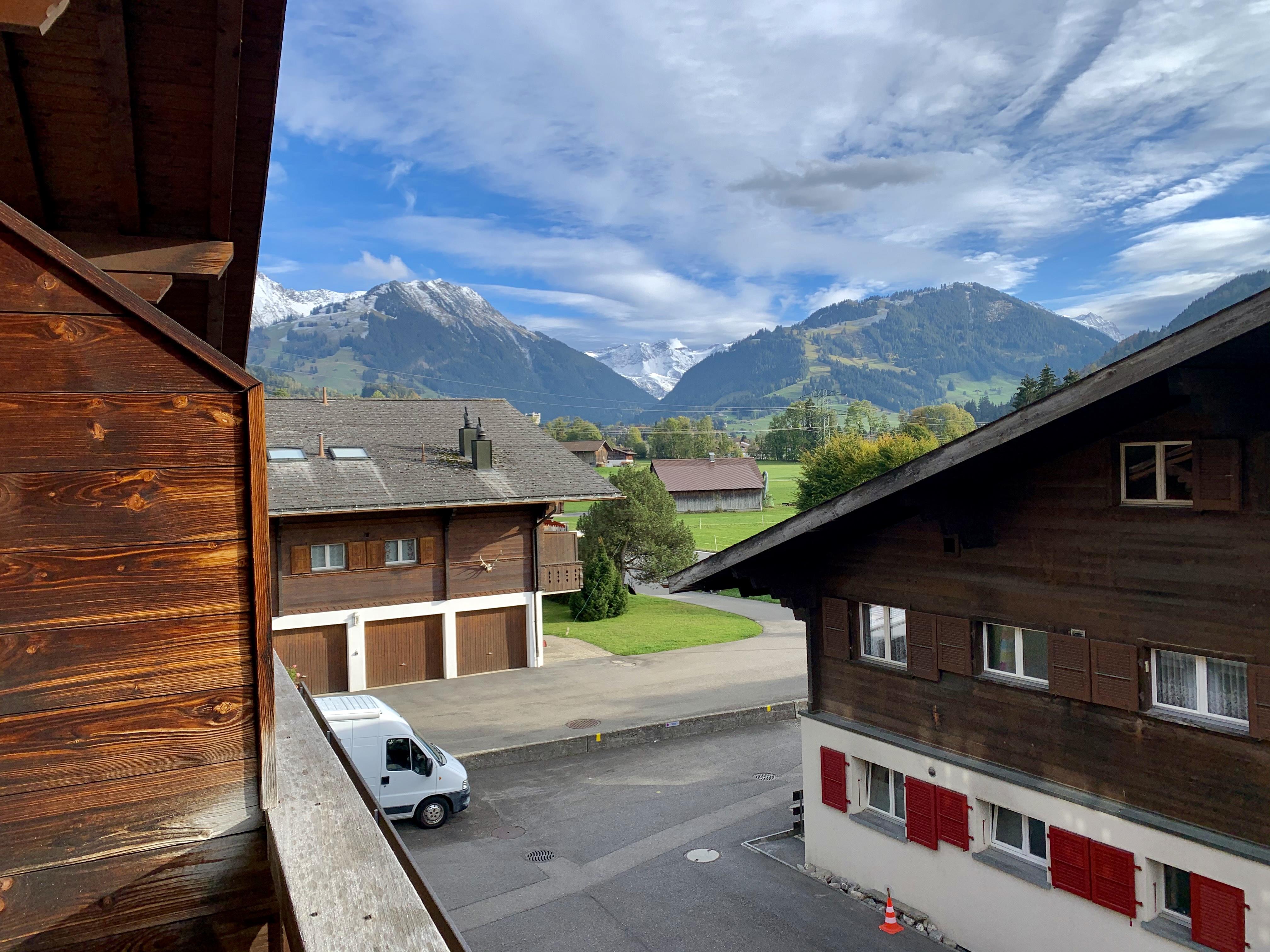 Sonnige 4.5-Zimmerwohnung (100m2) auf zwei Etagen (Hochparterre und 1. Stock) zwischen Gstaad und Saanen. Grosse Terrasse, Balkon, Galerie, Cheminée, ein Parkplatz und ein Garagenplatz inkl. Abstellmöglichkeit für Skier vorhanden. Im Winter unweit der Ski- und Langlaufpisten. Im Sommer in der Nähe vom Schwimmbad Saanen.