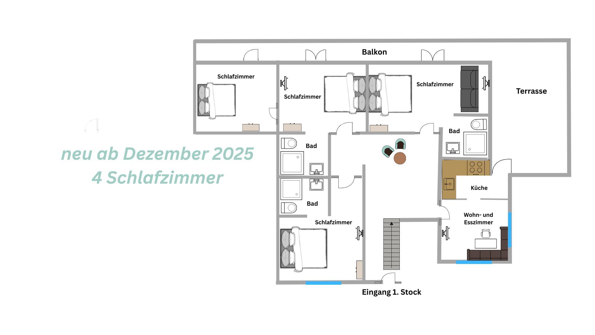 Auf 100 m² bietet unser Apartment Platz für bis zu 9 Personen:
