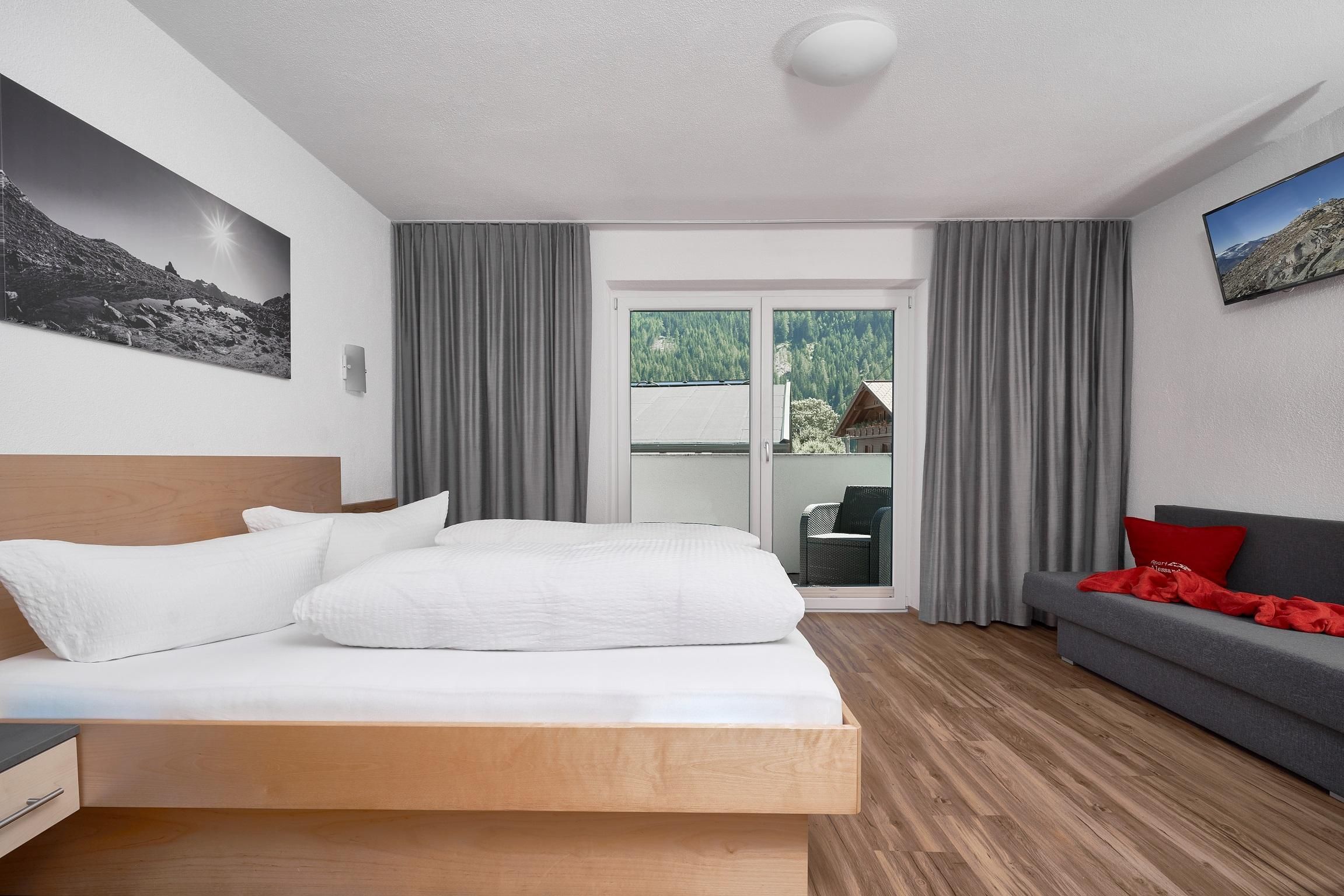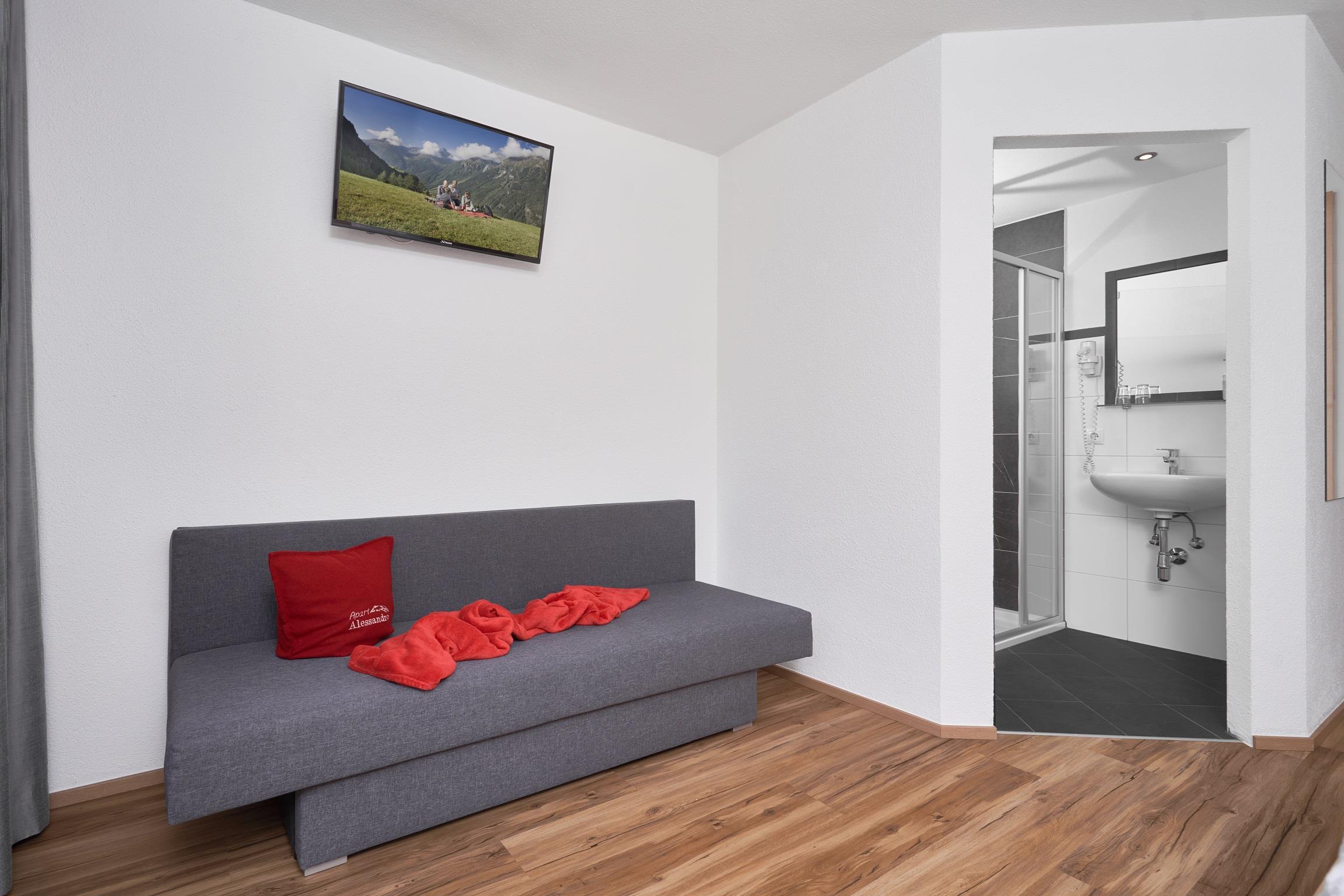 • 1 Zimmer mit Dusche/WC, Schlafsofa und Balkon