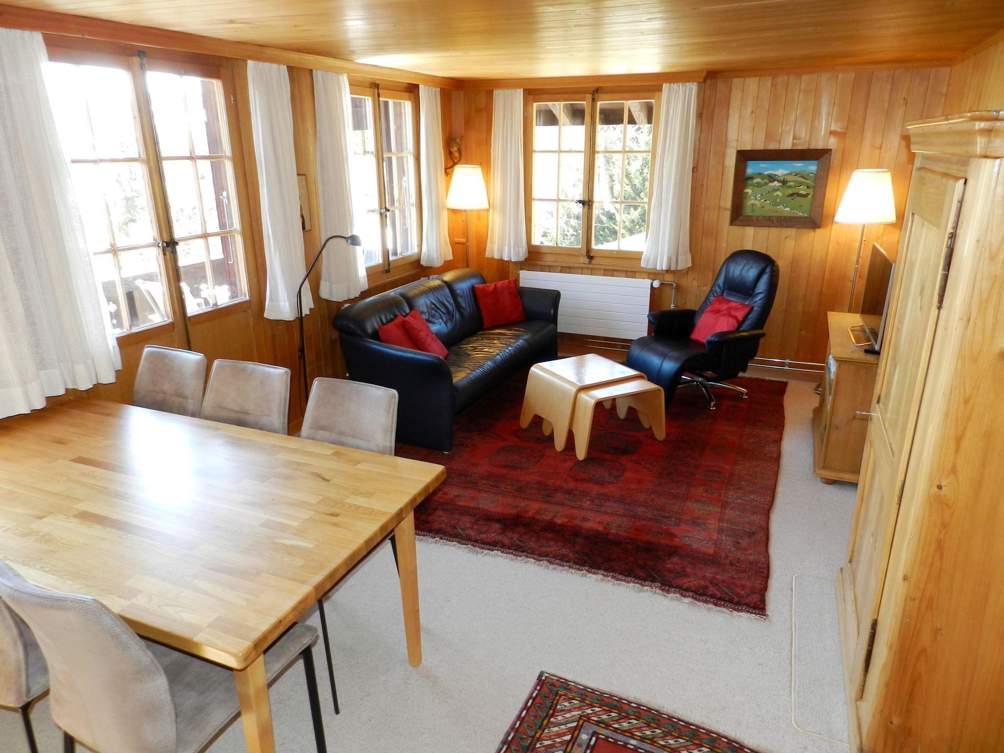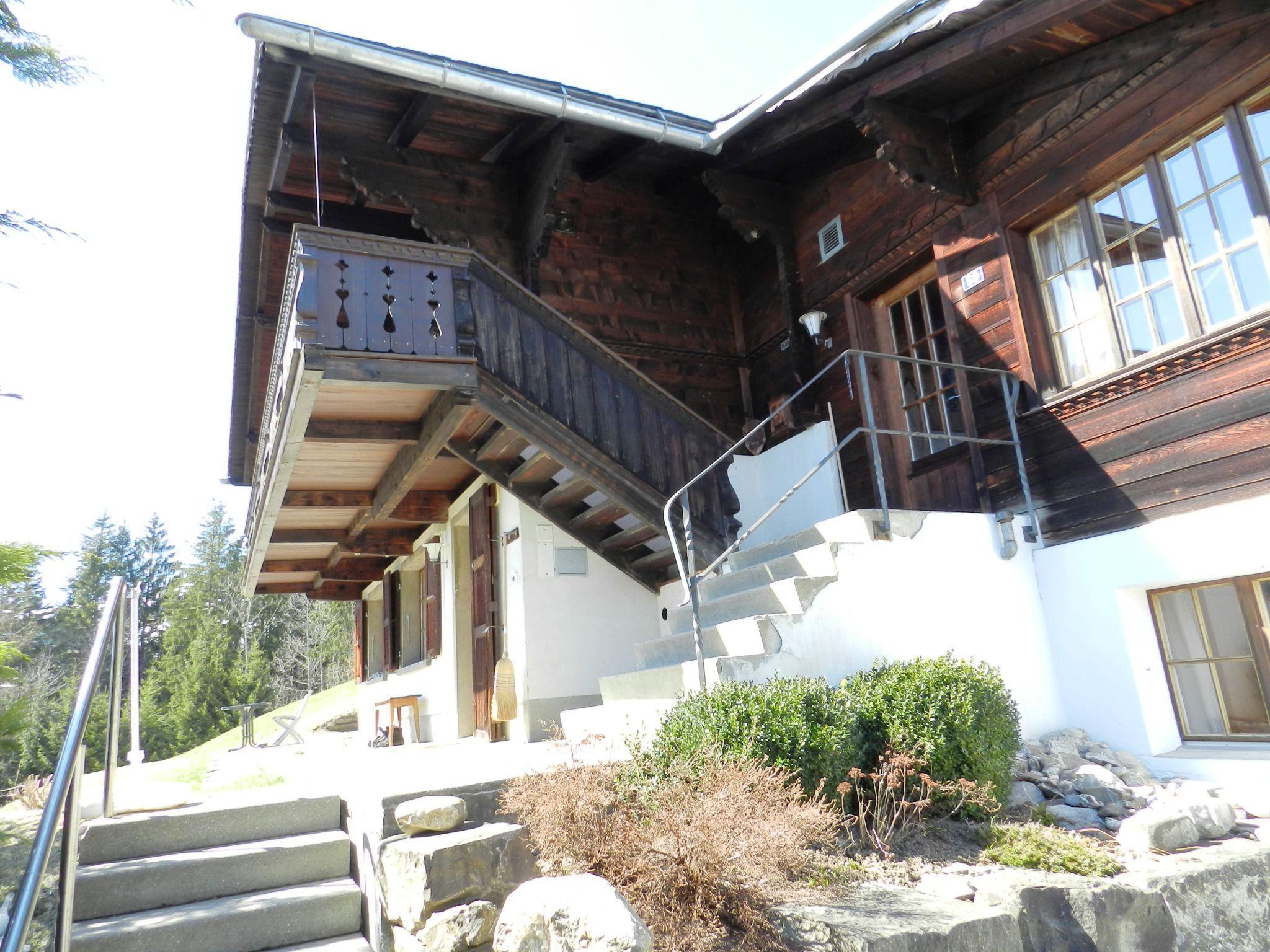 Einfache 4-Zimmerwohnung (60m2) im 1. Stock eines Zweifamilien-Chalets. Möblierter Balkon. Sehr sonnige und ruhige Lage mit Aussicht auf die Berge. Offener Parkplatz vorhanden. Waschküche mit Waschmaschine und Wäschetrockner stehen im Untergeschoss zur gemeinschaftlichen Benutzung zur Verfügung.