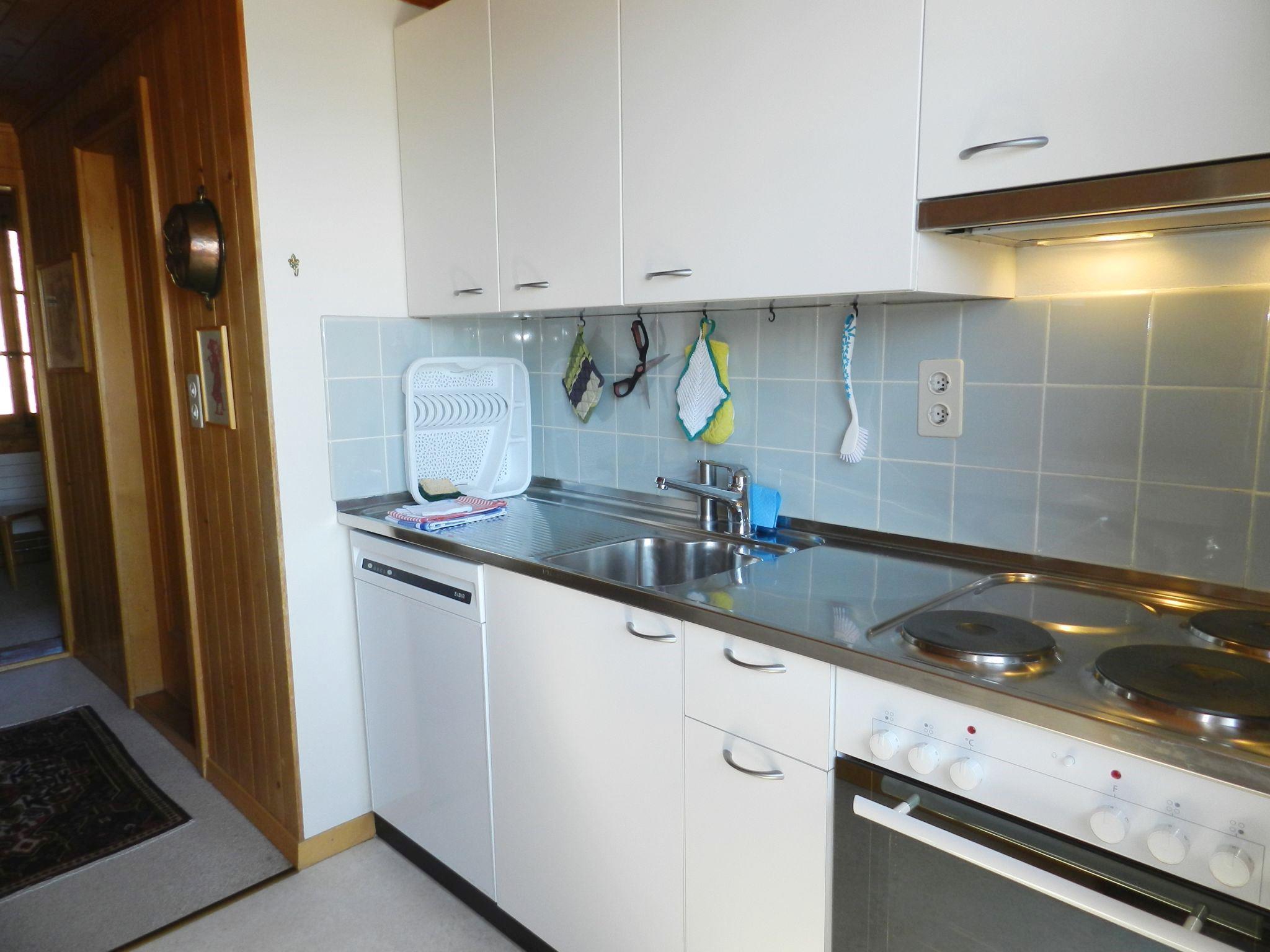 Wohn-/Esszimmer mit TV/DVD/Radio. Offene Küche mit Geschirrspüler, Kühlschrank mit Gefrierfach, Filterkaffemaschine sowie Fondue-, Raclette-Set . 1 Schlafzimmer mit 2 Einzelbetten (2x90x200cm). 1 Schlafzimmer mit 1 Etagenbett (2x80x190cm) und Waschbecken. 1 Schlafzimmer mit Doppelbett (160x200cm). 1 Badezimmer mit Dusche/WC. WiFi.