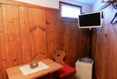 Heimeliges Gästezimmer, ideal für Kurzaufenthalte. Grand Lit (1.40 x 1.90), Dusche/WC, kleiner Esstisch, Küchenecke (ohne Kochgelegenheit) mit Kaffeemaschine, Wasserkocher, Toaster, Essgeschirr und Kühlschrank, TV, Radio/CD.