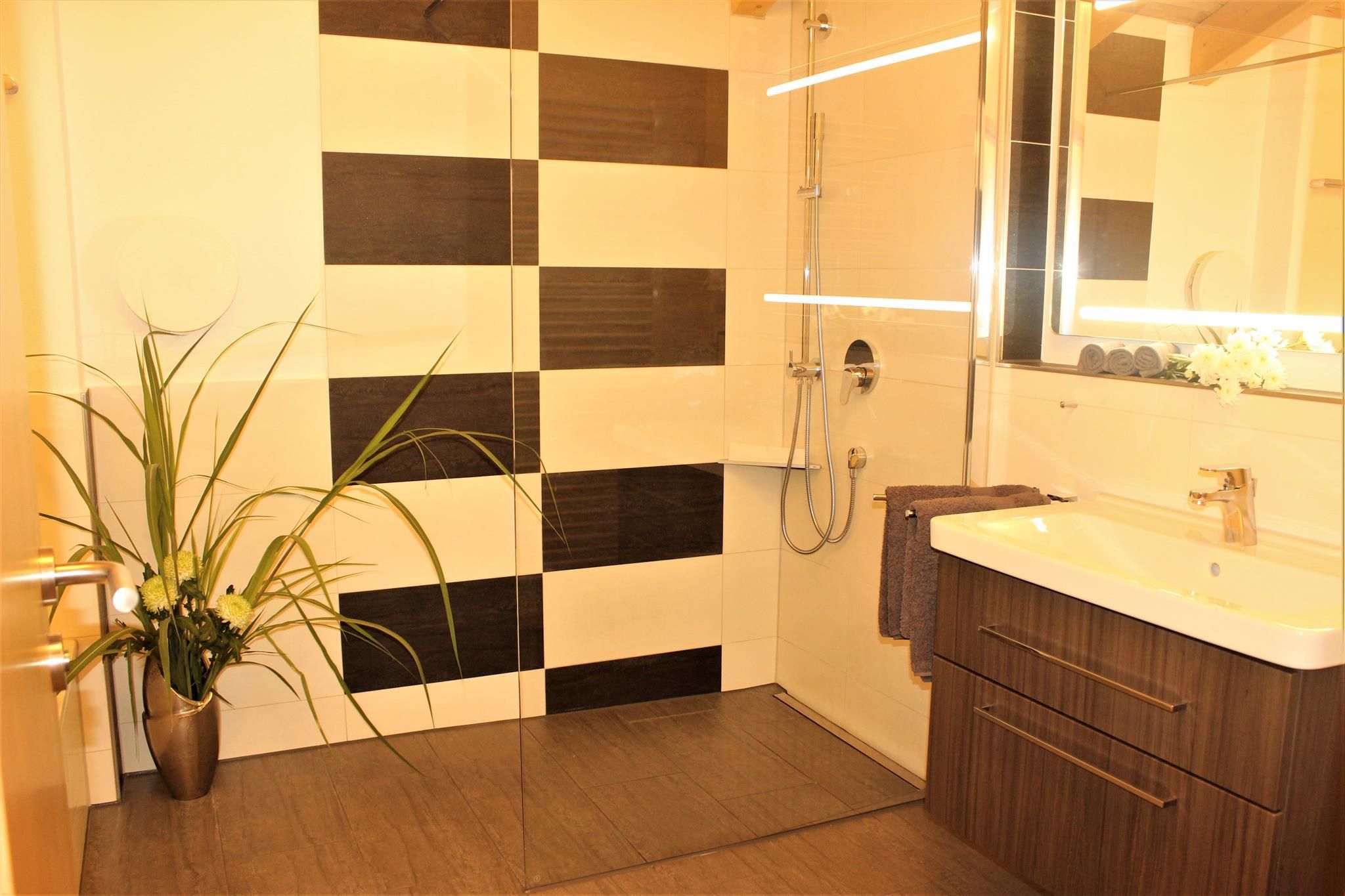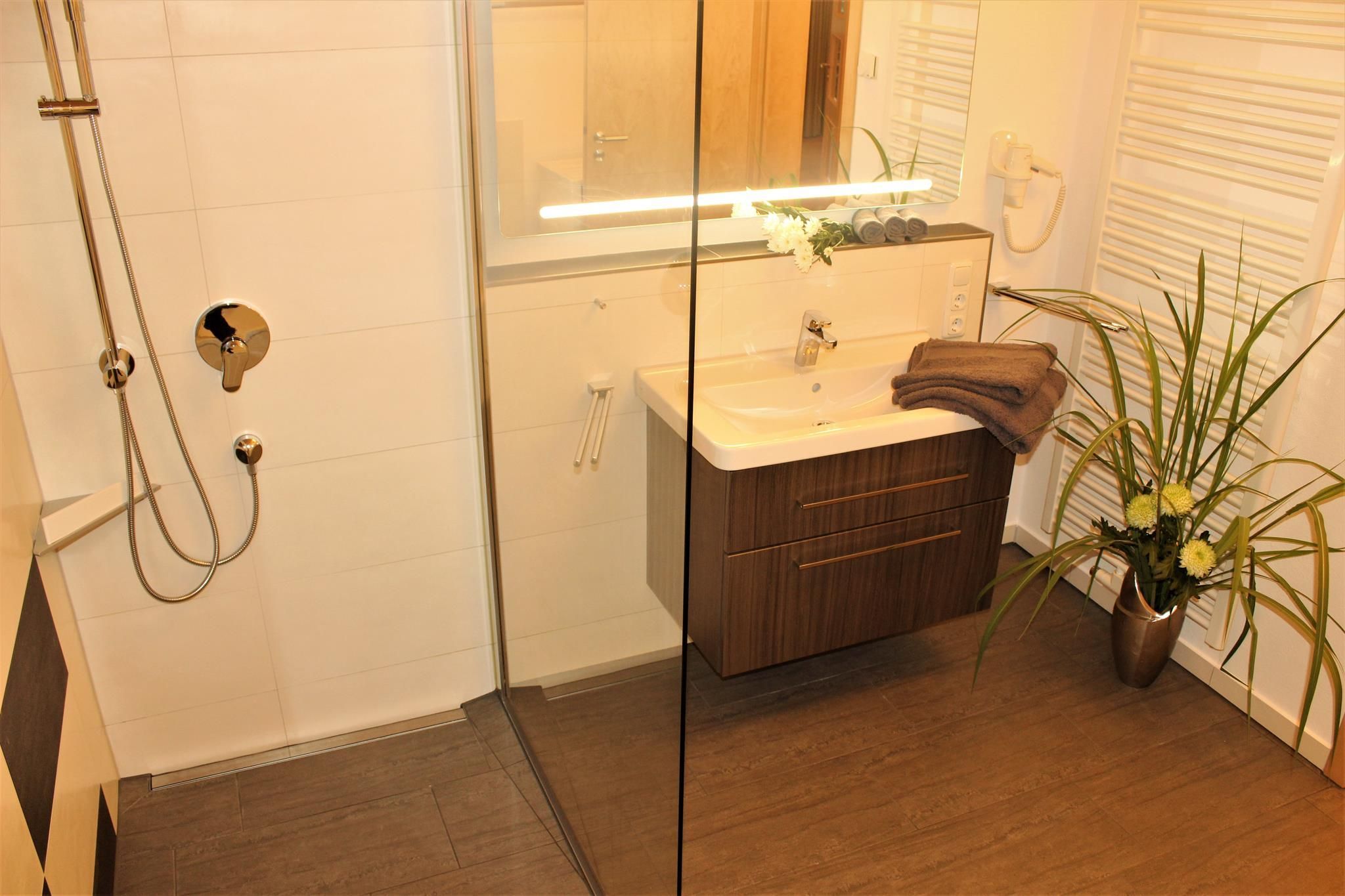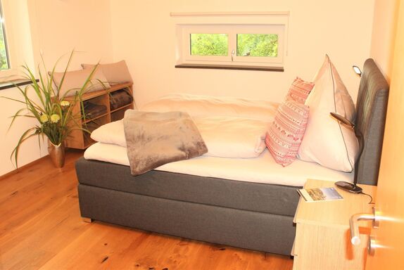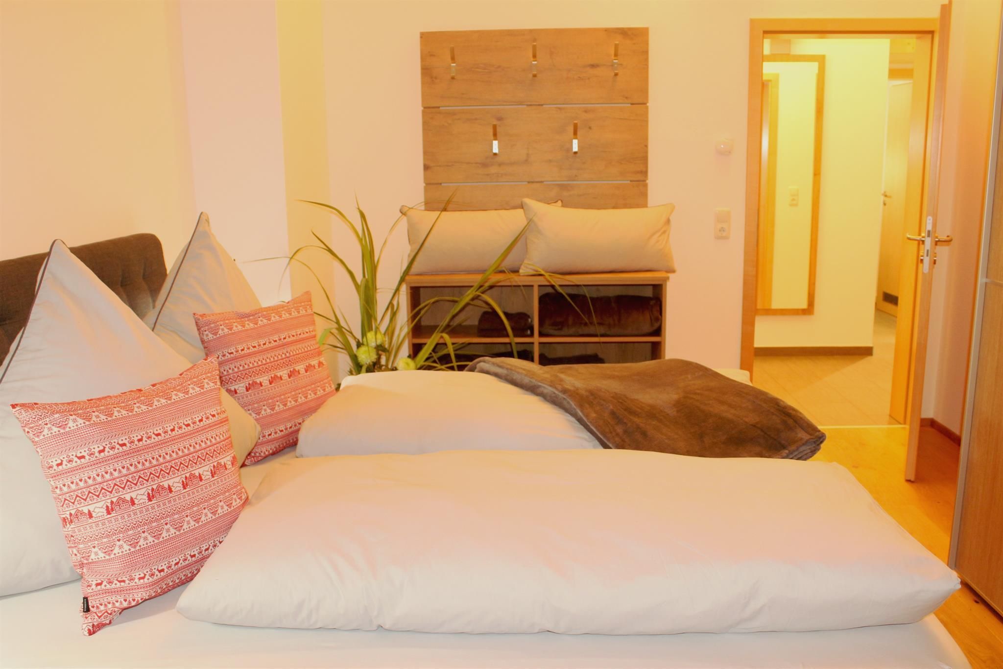 In der Ferienwohnung befinden sich 2 Schlafräume mit Doppelbett. Das geräumige Bad besitzt eine große Dusche, Badewanne, ein Waschbecken mit Unterschrank und eine Waschmaschine. Es ist noch ein seperates WC vorhanden.