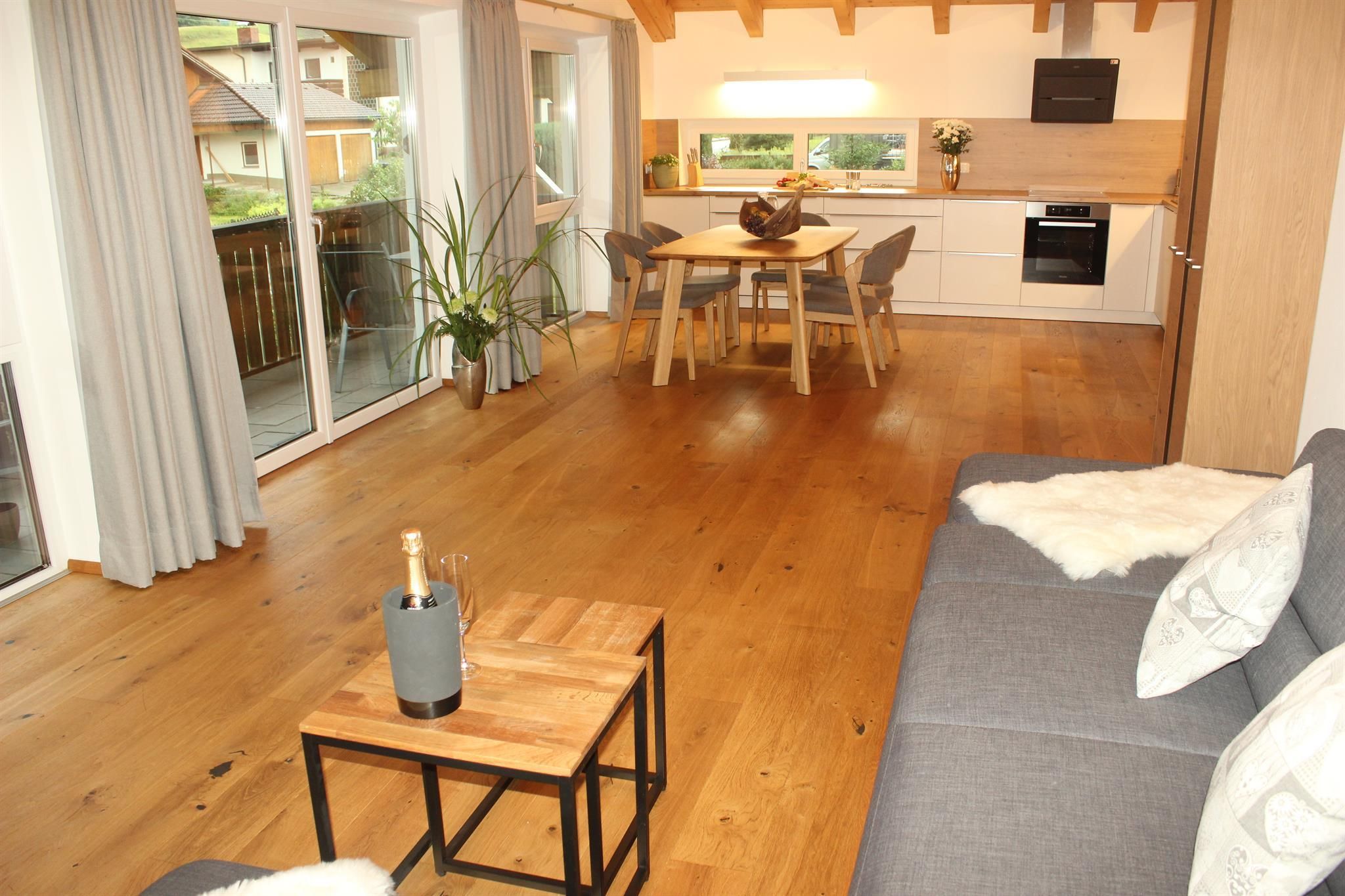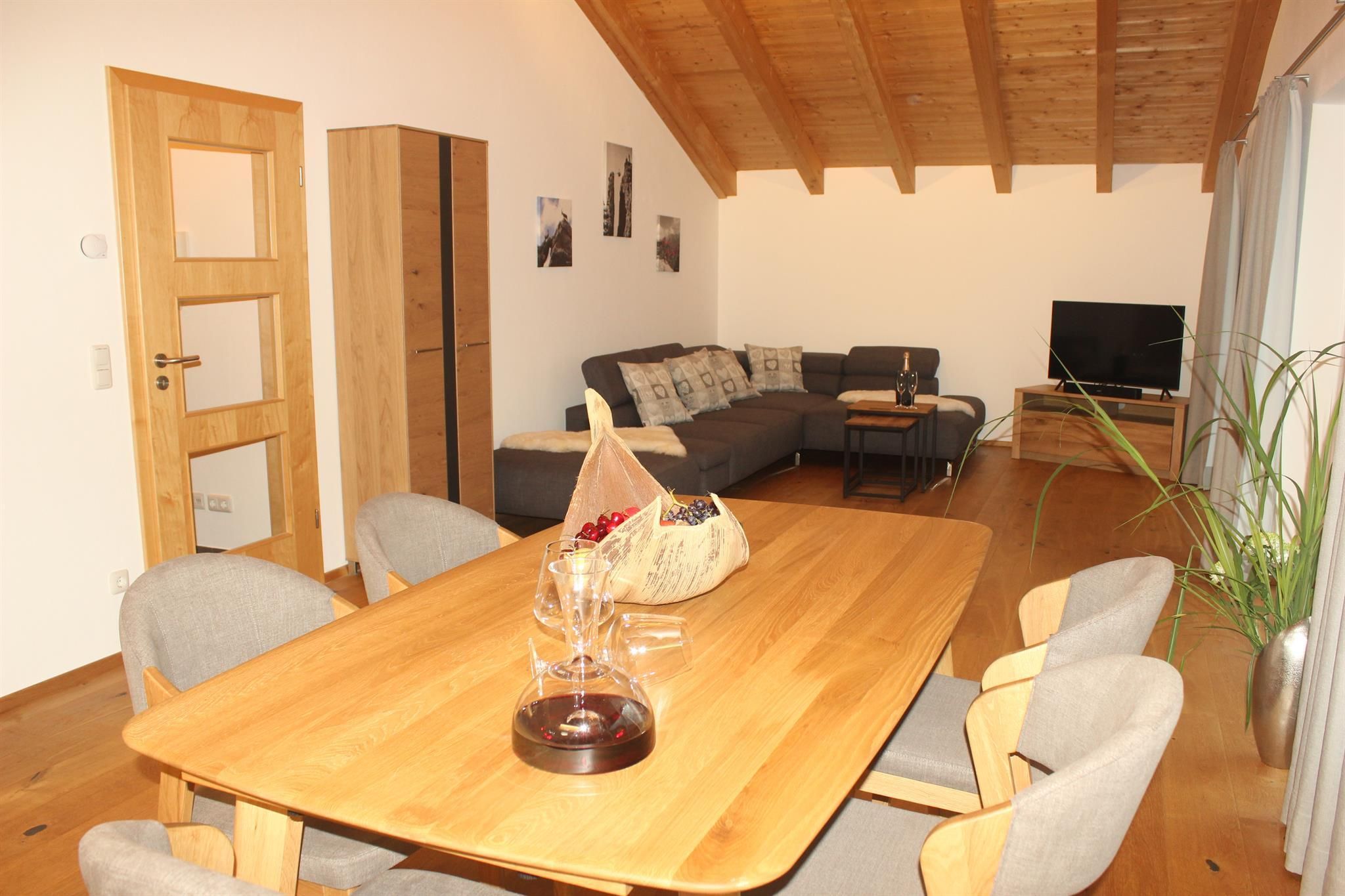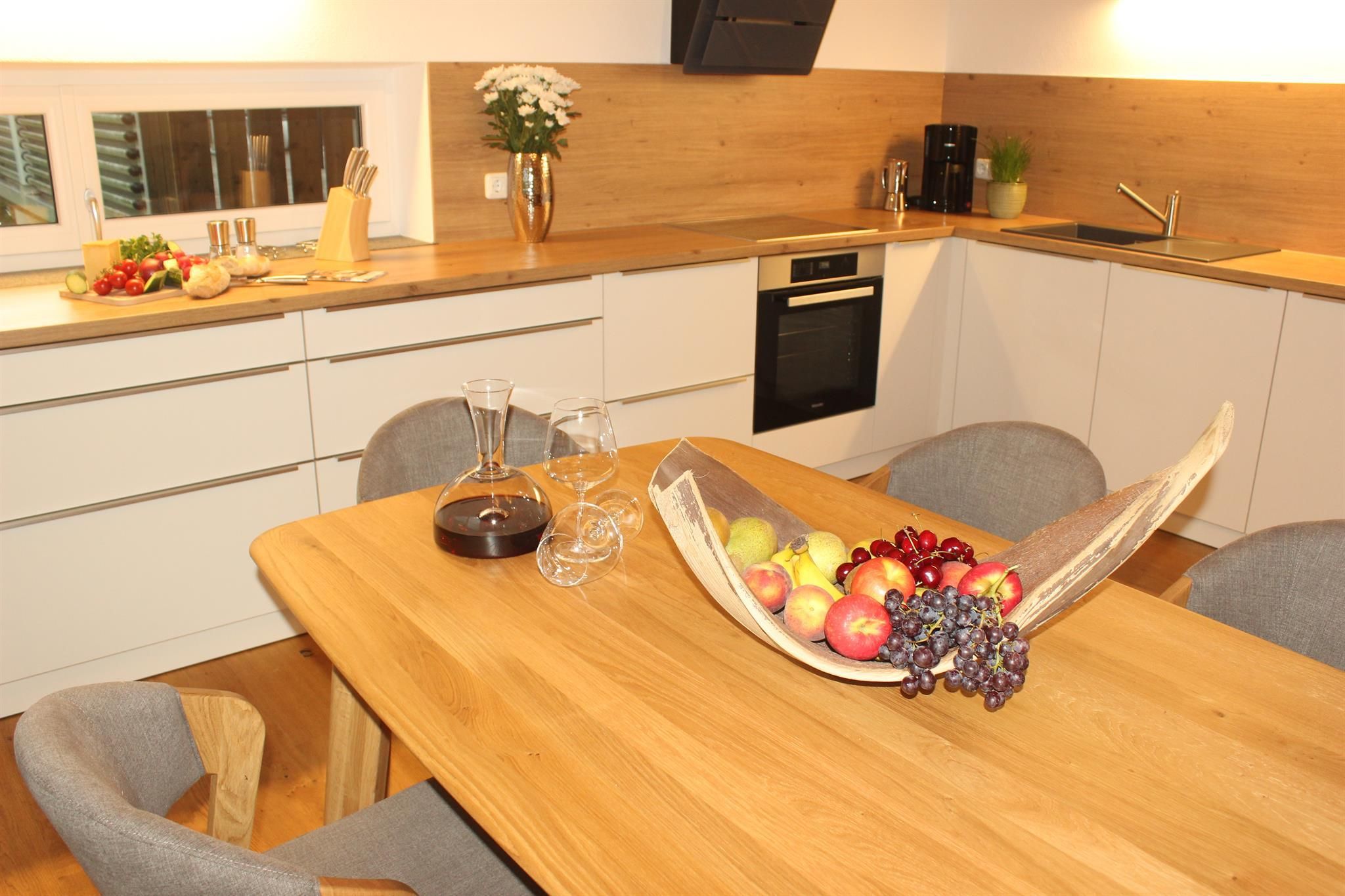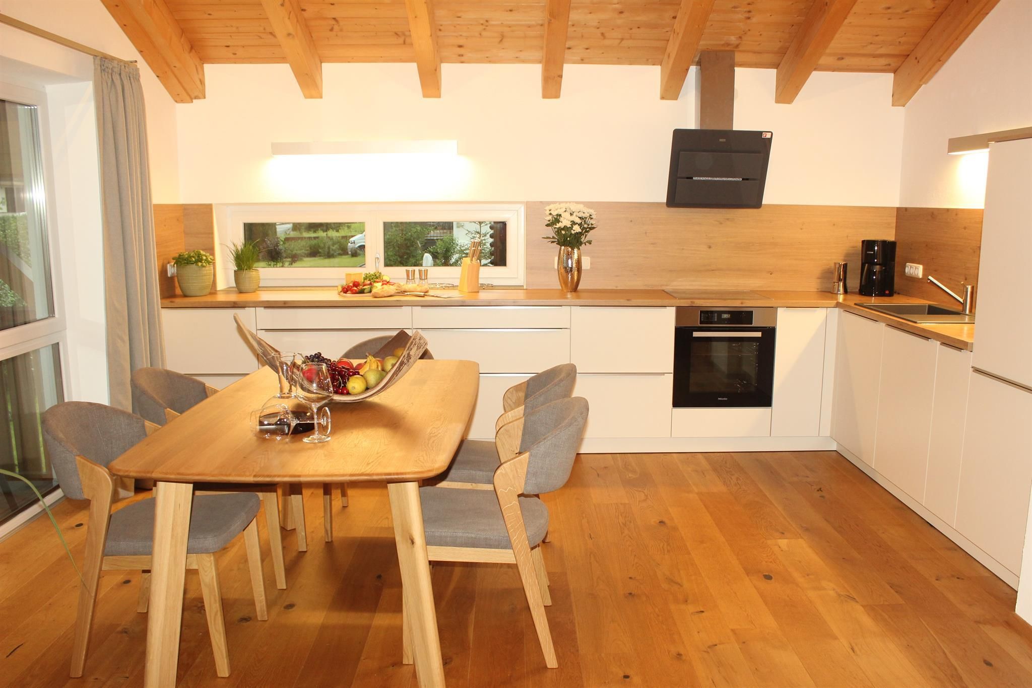 Die offene Bauweise mit sichtbarem Dachstuhl, ausgestattet mit einer modernen Küche, einem gemütlichen Wohn-Essbereich mit TV – und Sound Bar sowie W – Lan ermöglichen ein entspanntes Wohngefühl.