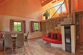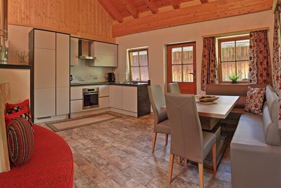 Unser Alpenchalet Farst umfasst eine Doppelhaushälfte mit ca. 100 m² Wohnfläche. Im unteren Geschoss befindet sich eine großzügige Wohnküche mit Essecke, Kaminofen und Ofenbank, sowie ein Schlafzimmer und ein Badezimmer mit DU/WC und Föhn. Im Obergeschoss befindet sich eine Galerie (Wohnzimmer mit Flat- TV) und ein Doppelzimmer mit einem zusätzlichen Einzelbett für eine weitere Person. Die Wohnküche ist mit Geschirrspüler, Wasserkocher uvm ausgestattet. Beim Eingangsbereich befindet sich eine kleine Terrasse.
