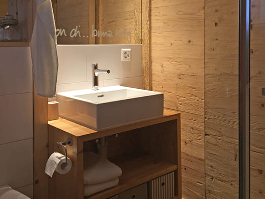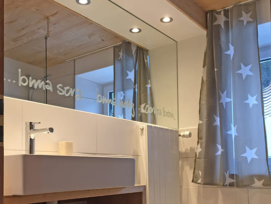 2 originelle Badezimmer mit je Dusche/WC. Frotteewäsche vorhanden und im Preis nicht inbegriffen. Waschmaschine und Wäschetrockner im Keller vorhanden.