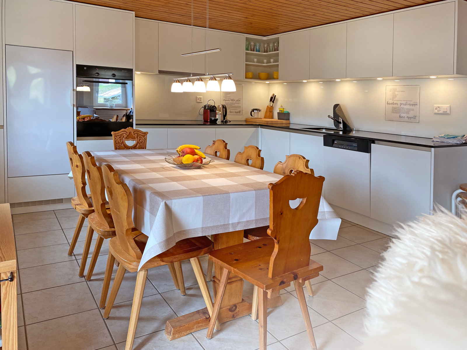 Die Küche ist modern, grosszügig und komplett ausgestattet: Glaskeramik-Kochherd, Backofen, grosser Kühlschrank, Geschirrspüler, Nespresso-Kaffeemaschine, Fondue-Caquelon, Racletteofen. Küchenwäsche vorhanden und im Preis inbegriffen. Badezimmer: