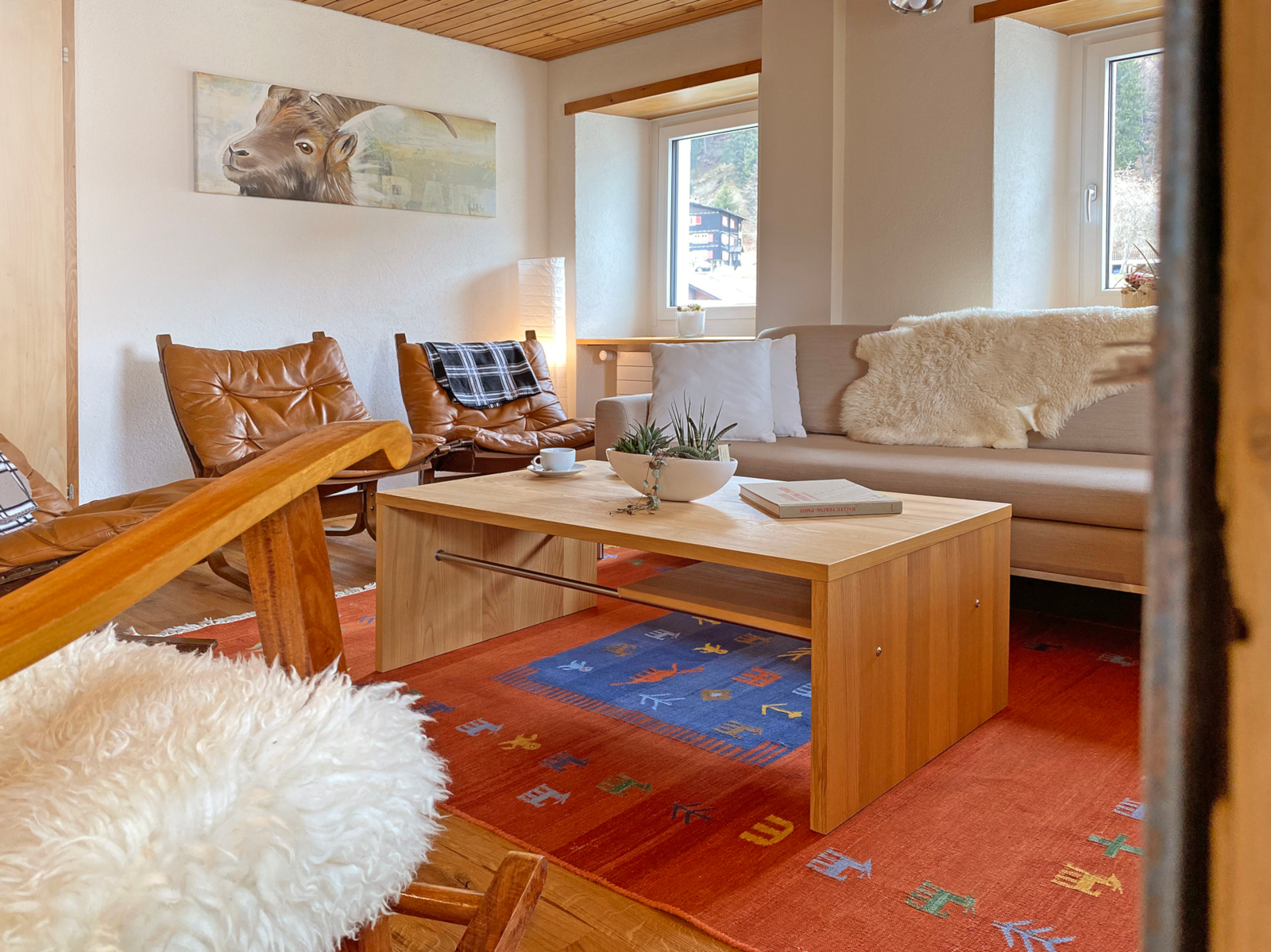 Sonnig und ruhig gelegen, im Dorfzentrum Flond und in der Nähe der Postauto-Haltestelle (Winter gratis). Vom Balkon aus kann man die schöne Bergwelt bestaunen und den Sonnenuntergang geniessen.