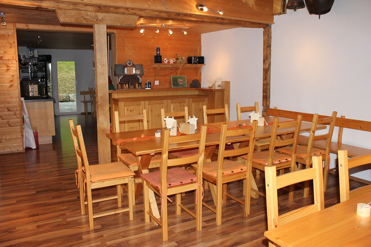 Das heimelige Ferienhaus ist gemütlich und komfortabel mit viel Holz eingerichtet. Die Wände im Wohn-und Schlafzimmer sind getäfert. Im Wohnzimmer befindet sich ein Flachbild-TV und ein Radio. WLAN ist vorhanden. Zum Haus gehört eine grosse Wiese mit Sitzplatz, Cheminée und Kinderspielzeug.