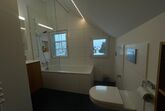 Vorsicht: Die Decken sind verhältnismässig relativ niederig. Vor allem im Badezimmer welches in die Dachschräge gebaut und etwas erhöht ist müssen grosse Personen möglicherweise etwas den Kopf einziehen. Für sehr grosse Personen gibt es in der Dusche eine Sitzgelegenheit.