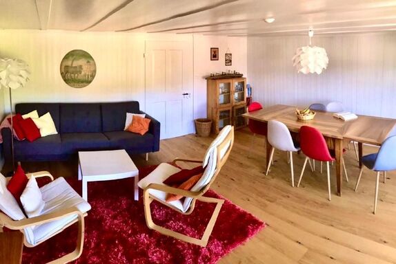 Die Wohnung in traditionellem Appenzellerstil ist sehr gemütlich eingerichtet.