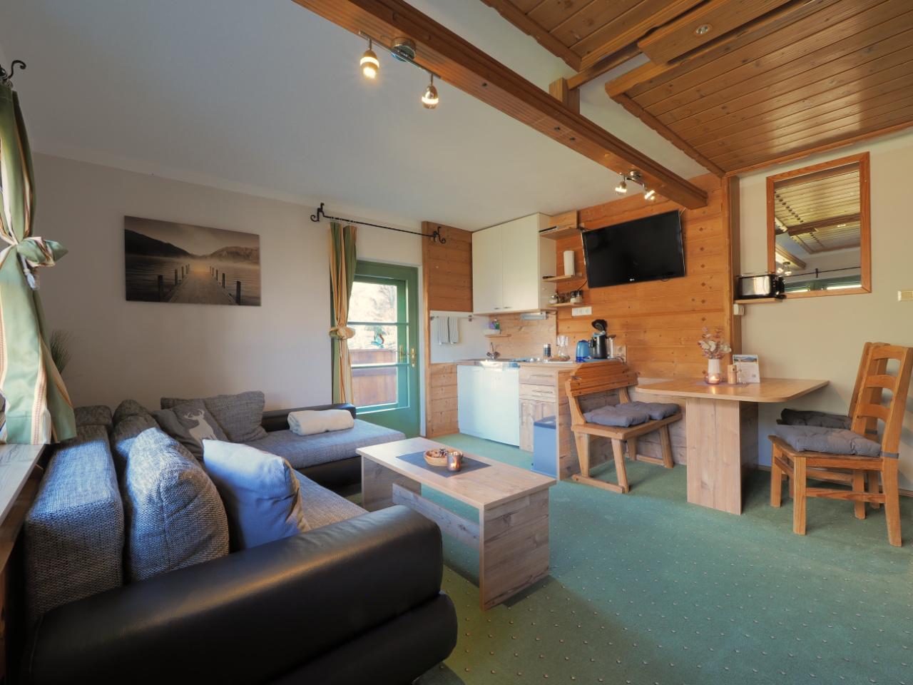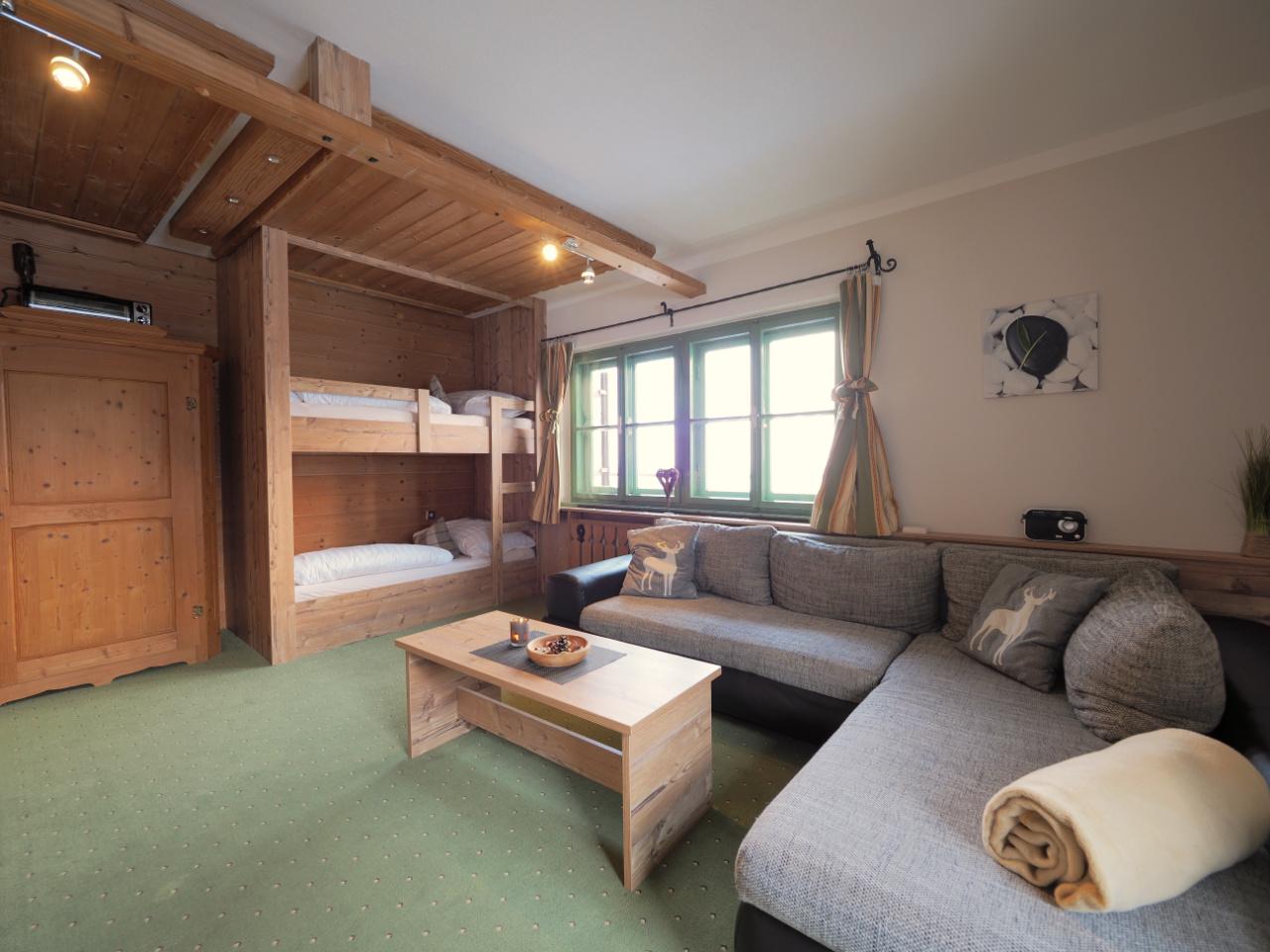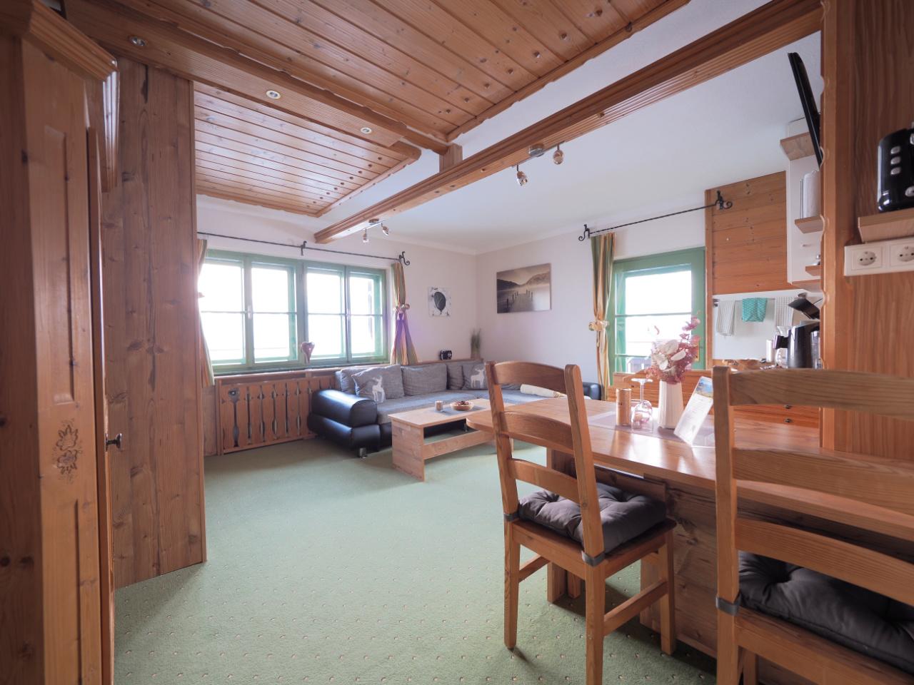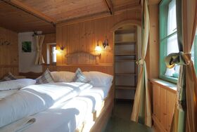 Gemütliche Wohnung (52 m²) im Tiroler Stil mit großem Balkon im 1. OG. Ein Schlafzimmer mit Bauernhimmelbett, begehbarem Kleiderschrank und einem Einbaubett. Im Schlaf-/Wohnraum befindet sich die Küchenzeile mit einer Essgruppe, ein Stockbett, eine Couchlandschaft und ein großer Flachbildfernseher mit SAT/TV. Ein großes Badezimmer mit WC und Wanne mit Duschwand machen die Wohnung komplett. In dieser Einheit sind keine Haustiere erlaubt, Haustiere sind in der Einheit Adler willkommen.