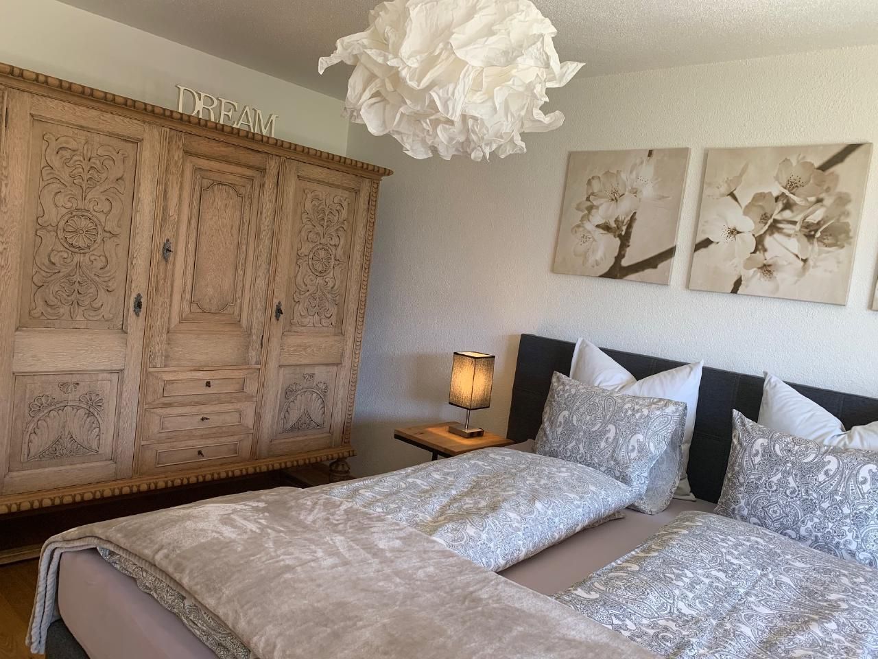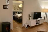 •Modernes Schlafzimmer mit hochwertigem Hotel-Boxspringbett (1,80 × 2 m) und großem Kleiderschrank