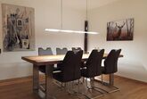 •Gemütliches Wohnzimmer mit großem Esstisch, Schaukelstuhl, komfortablem Schlafsofa und zusätzlicher Faltmatratze (bis 70 kg)