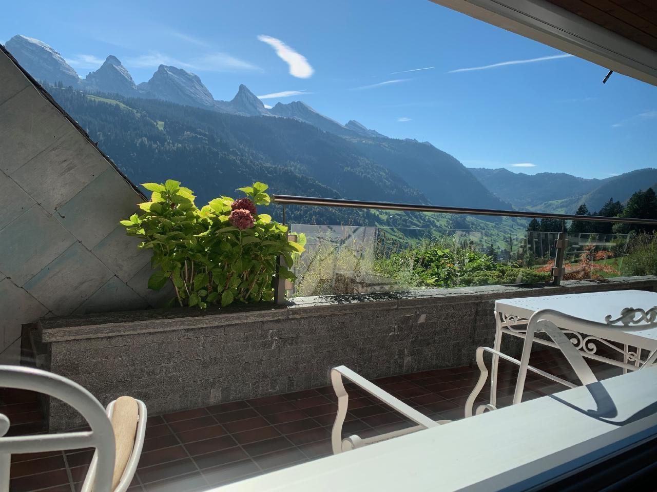 •Großzügiger Balkon mit Gartentisch, bequemen Sitzgelegenheiten und spektakulärem Panoramablick