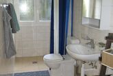 Das grosse Badezimmer verfügt über eine grosse-bodenebene Dusche.