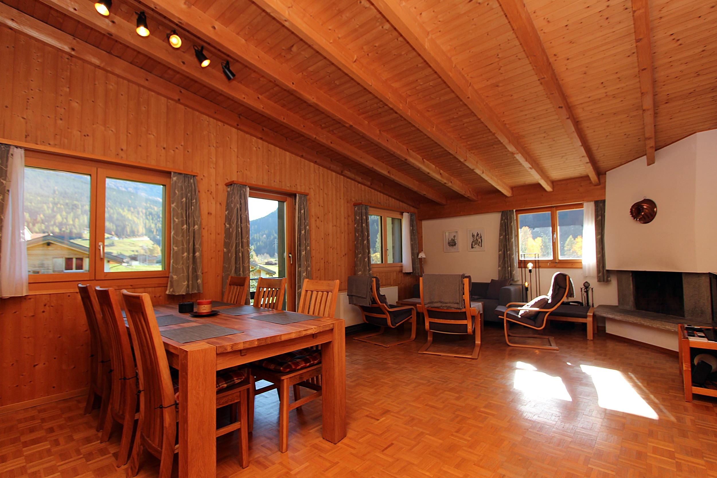 4 1/2 Zimmer Ferienhaus ca. 120 m2 auf 2 Stöcken mit insgesamt 6 Betten. Oberer Stock: 1 Schlafzimmer mit 1 Doppelbett. Bad mit Doppellavabo, Badewanne, Bidet und Toilette separat. WC separat. Küche mit Backofen, Kühlschrank, Geschirrspülmaschine und Kaffeemaschine. Wohnzimmer mit offenem Kamin. Grosser Balkon mit Gartenmöbel und Grill. Unterer Stock: 1 Schlafzimmer mit 2 Betten. 1 Schlafzimmer mit 1 Doppelbett. Dusche/WC/Lavabo. Haustiere nicht erlaubt. Nichtraucherwohnung. Waschmaschine. Duvet mit Daunen, Wolldecken. Radio/TV. Internetzugang WLAN. Garage. Skiraum und Sitzplatz.