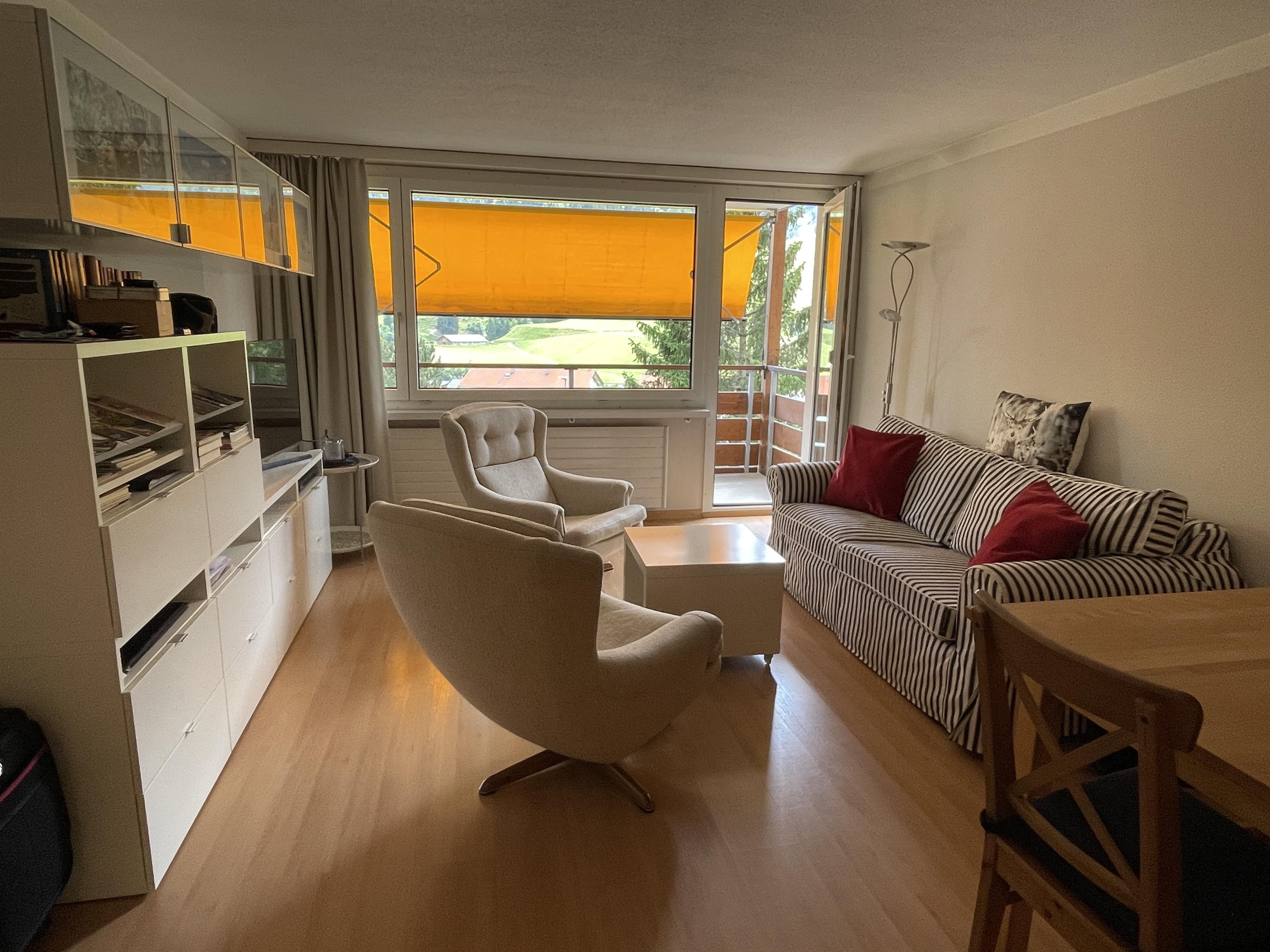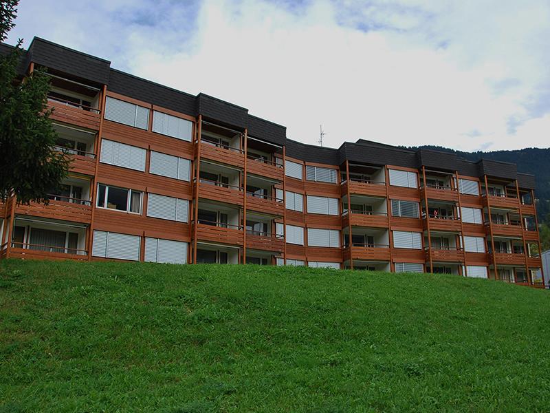 2 1/2-Zimmerwohnung ca. 60 m2 in Mehrfamilienhaus. 1 Schlafzimmer mit 1 Doppelbett, insgesamt 2 Betten. Bett- und Küchenwäsche vorhanden.  Küche im Wohnzimmer integriert mit Backofen, Kühlschrank, Geschirrspülmaschine und Kaffeemaschine. Dusche/WC. Haustiere nicht erlaubt. Nichtraucherwohnung. Waschmaschine und Tumbler. TV und Radio.Wlan.  Balkon. Parkplatz. Garten. Kinderspielplatz. Lift im Haus. Im Sommer geheiztes Freiluftbad mit Liegewiese. Liegestühle vorhanden. Skiraum zur Mitbenutzung. Sauna, Solarium gegen Entgeld. Saunabenützung CHF 10.00. Das Benutzen der Bettwäsche ist Pflicht.