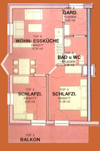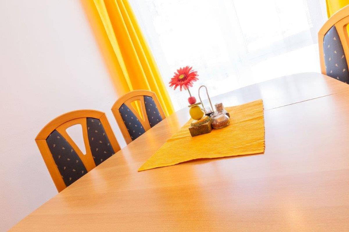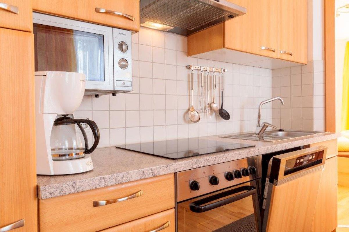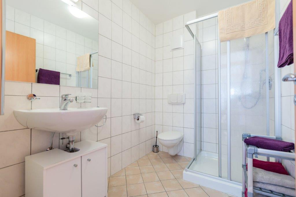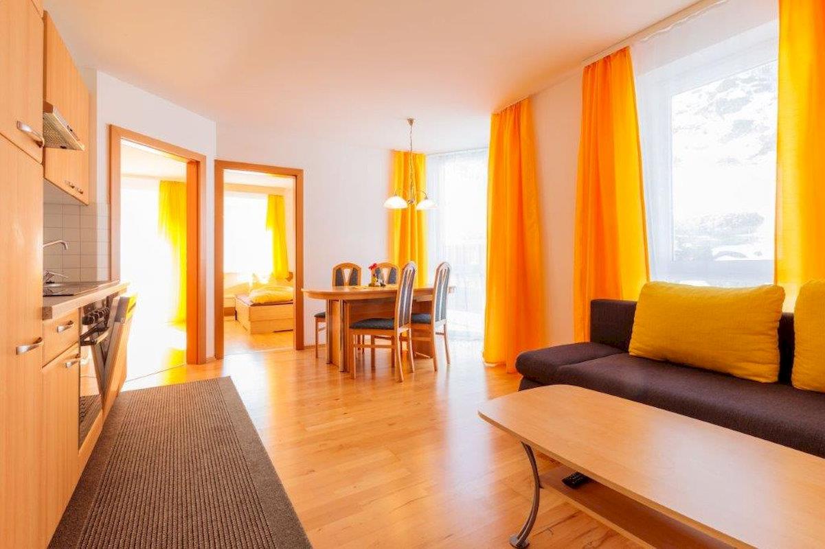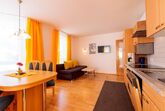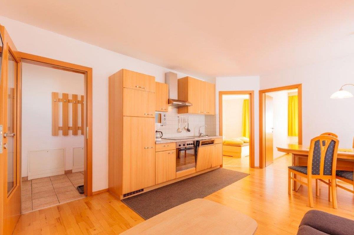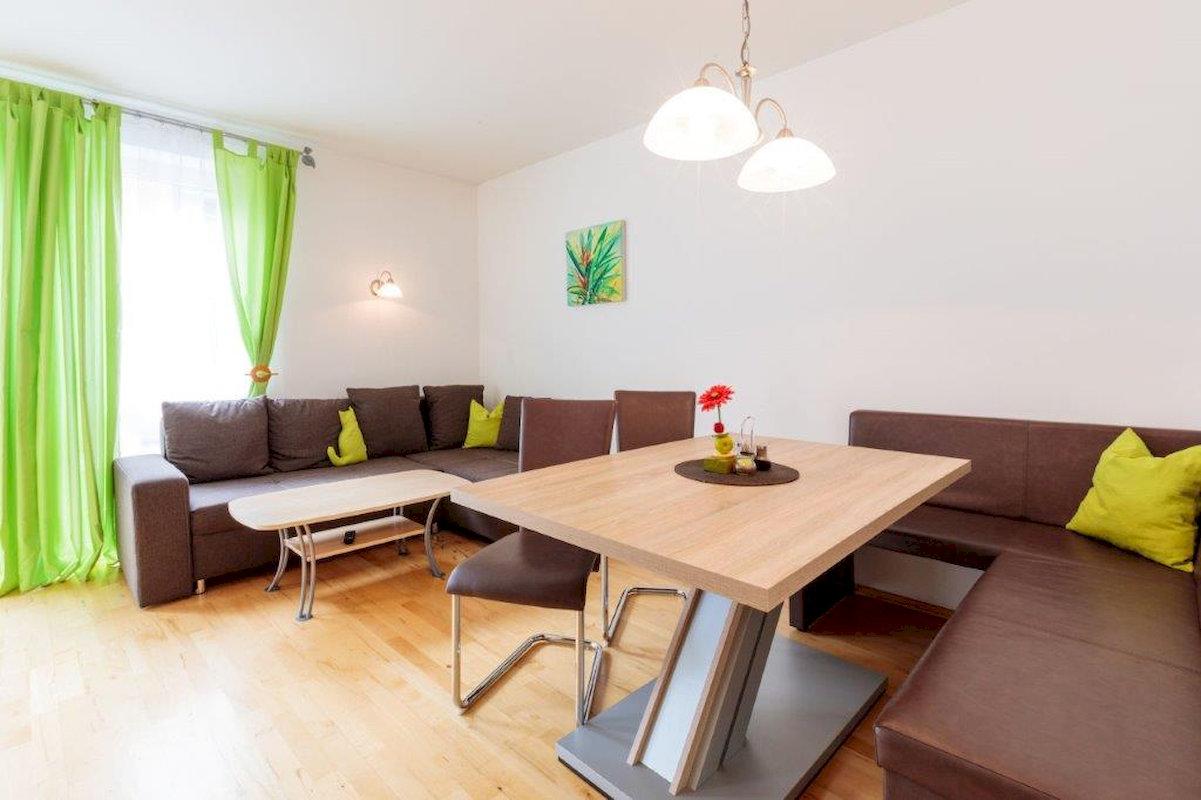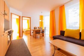 Gemütlich und helles Appartement Stefan mit Balkon: 2 getrennte Doppelzimmer, vollausgestatte Wohnküche (Geschirrspüler, Kaffeemaschine, Wasserkocher, Mikrowelle, Toaster und Eierkocher uvm.) mit Essecke, ausziehbarer Couch (Schlafmöglichkeit für 1 weitere Person) und Kabelfernseher, 1 Badezimmer mit Dusche/WC und Föhn, Vorraum mit Garderobe. Größe: ca. 55 m²