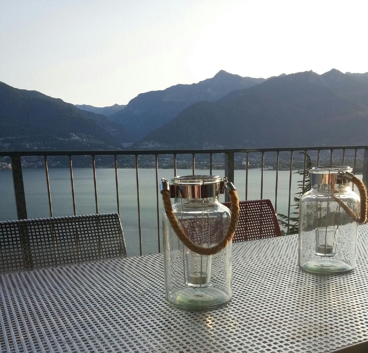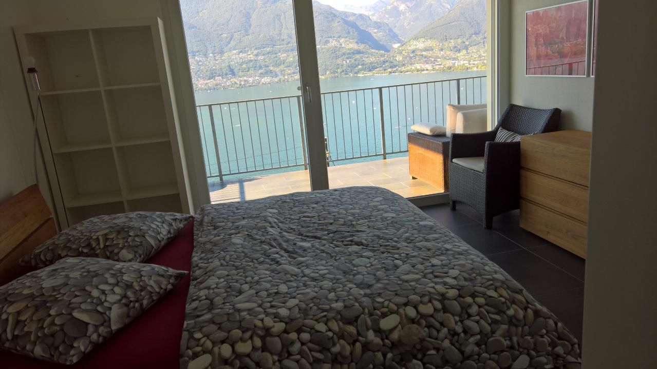 Der Blick reicht über den Lago Maggiore bis zu den Ortschaften Locarno, Ascona, Brissago, Versascatal, Maggiatal und über die Magadinoebene.