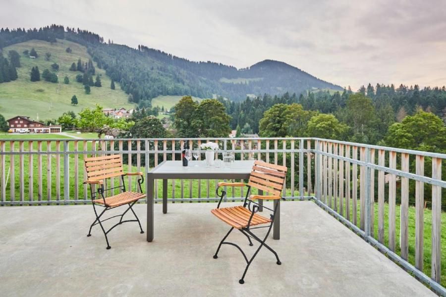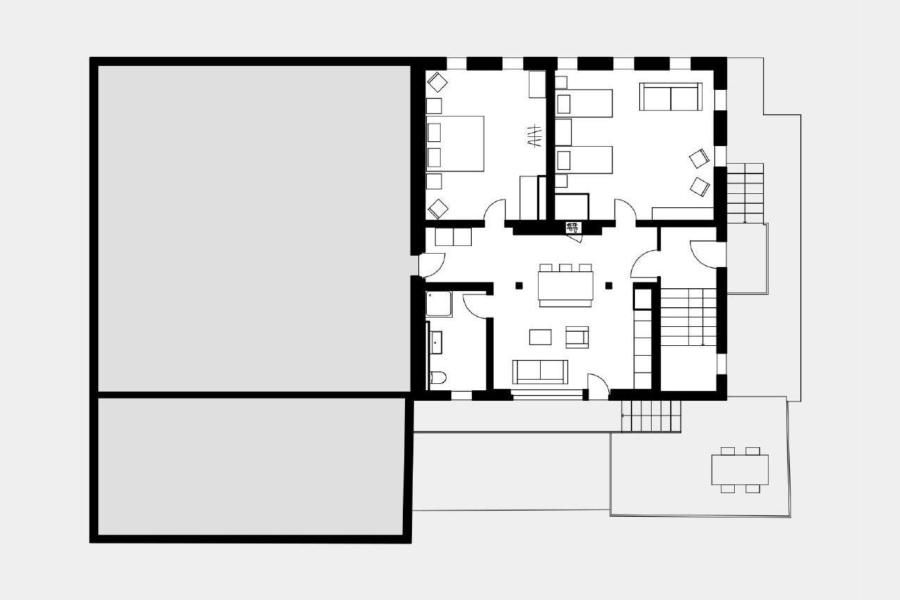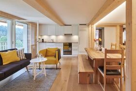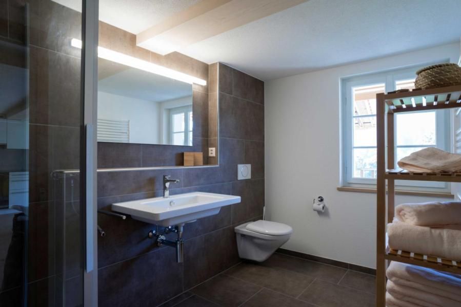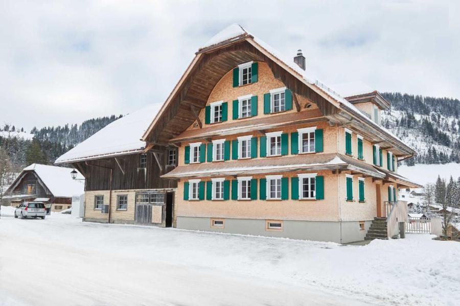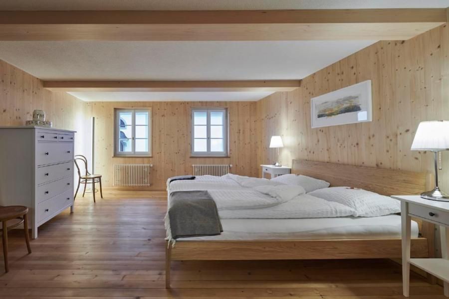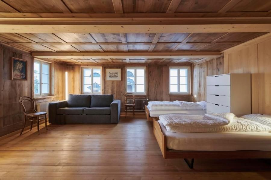 Anzahl Personen 4-6: Es ist ein Babybett (bis 2 Jahre) vorhanden. Das Haus bietet Platz für sechs Gäste (plus Baby). Es steht ein Doppelzimmer und ein Vierbettzimmer zur Verfügung. Aus der grossen Wohn-Esszimmerküche geht eine Terrasse mit schöner Aussicht auf die Wiesen und Wälder der Umgebung ab. Im grossen Schlafzimmer kann bei Bedarf aus einem Sofa ein sehr bequemes Doppelbett gemacht werden. Das Badezimmer mit Dusche und Toilette bietet modernen Komfort. Die Böden bestehen aus Holz, weshalb wir gute Hausschuhe empfehlen. Das Haus wurde im Jahre 1845 gebaut, weshalb es vorkommen kann, dass die Böden knarzen und dass man die Nachbarn in der Etage darüber ab und zu hören kann.