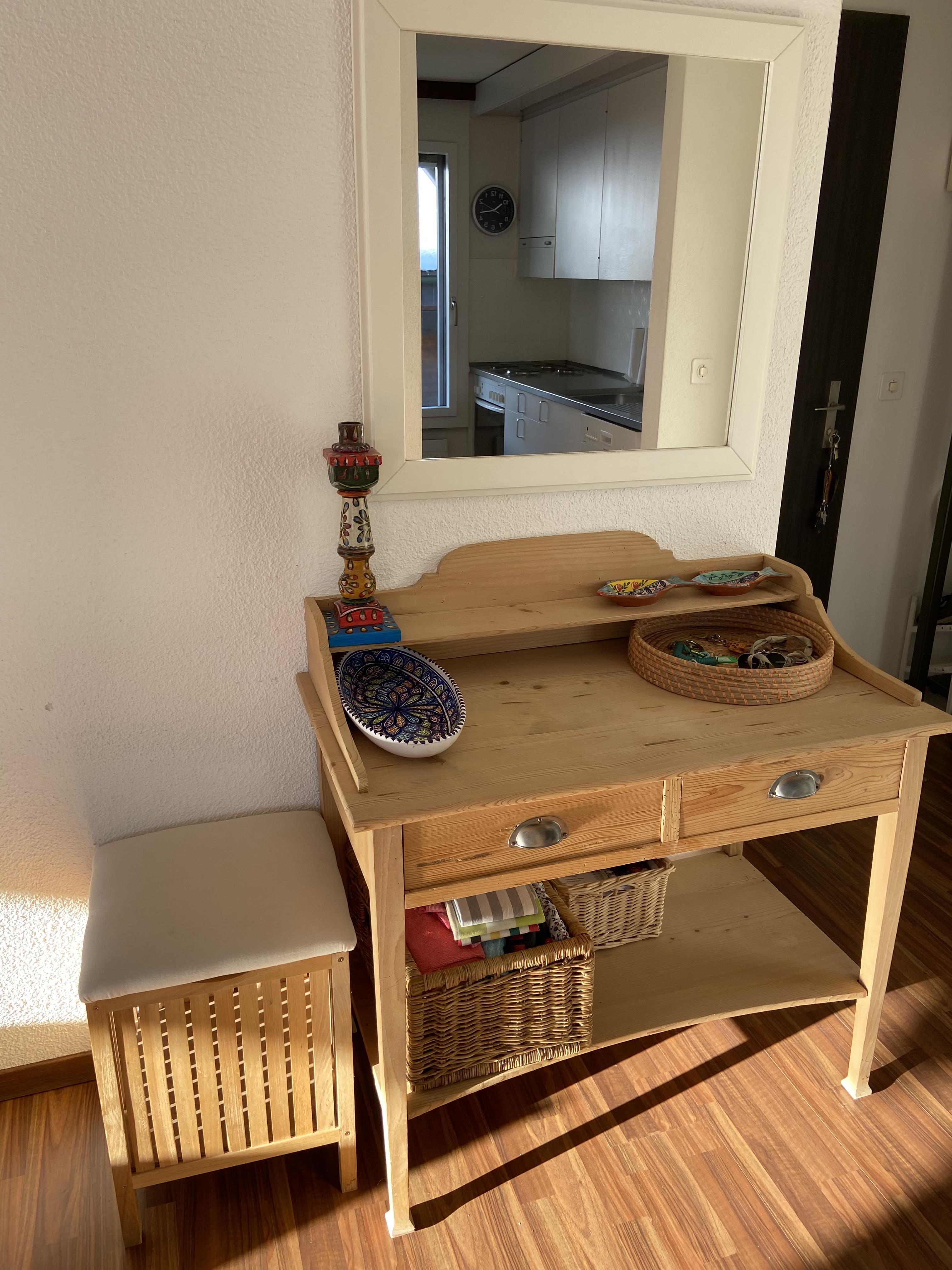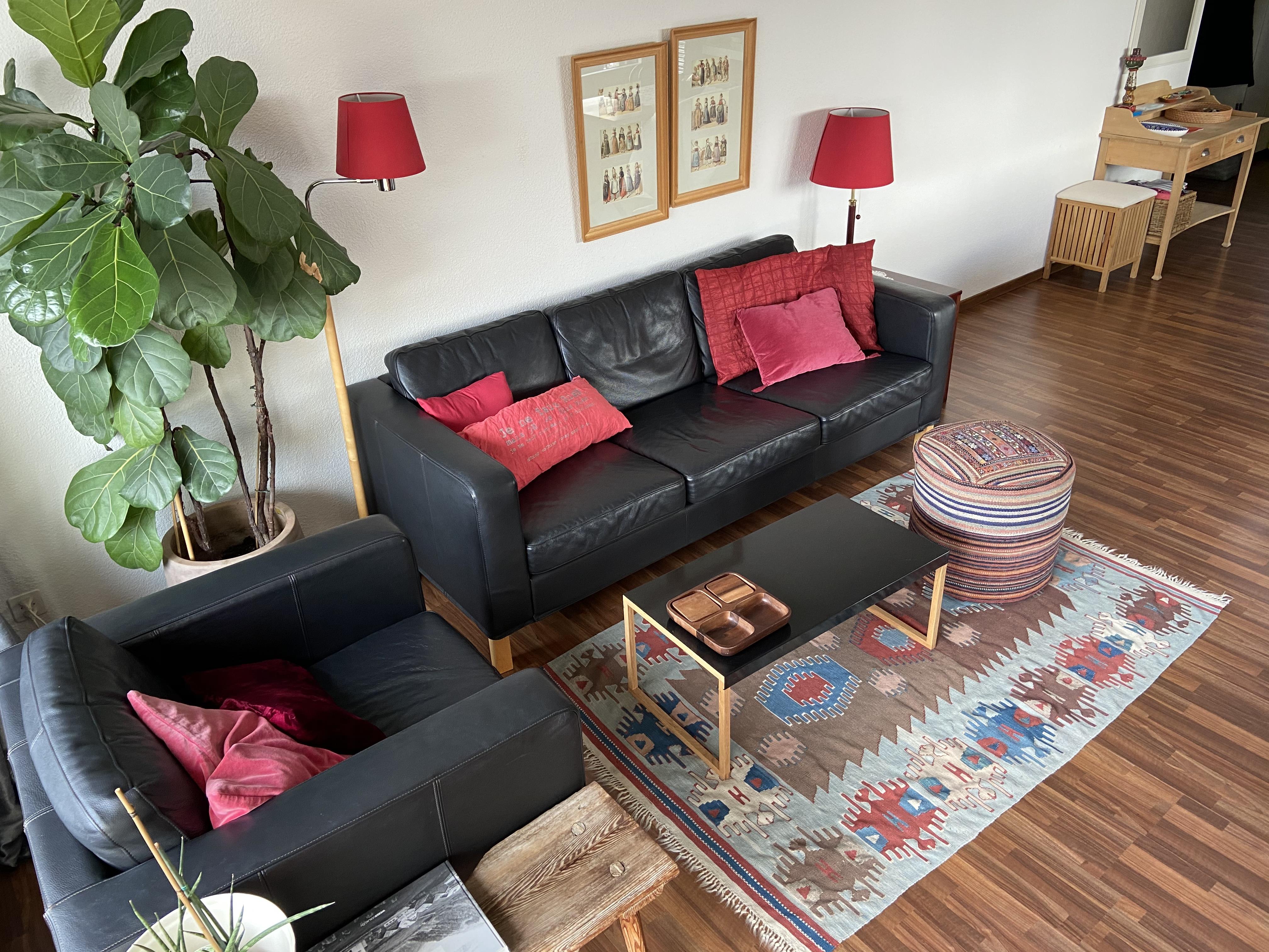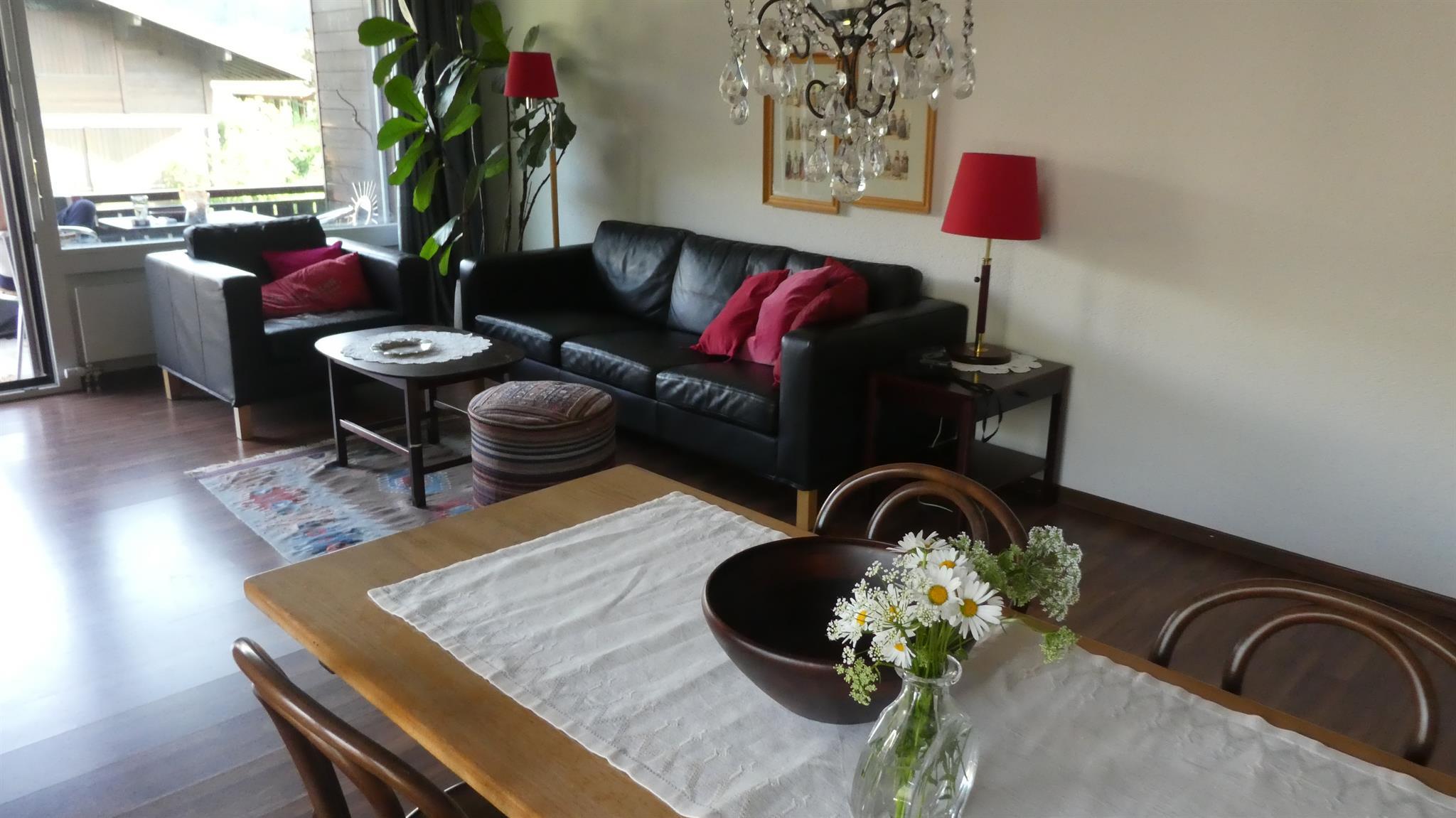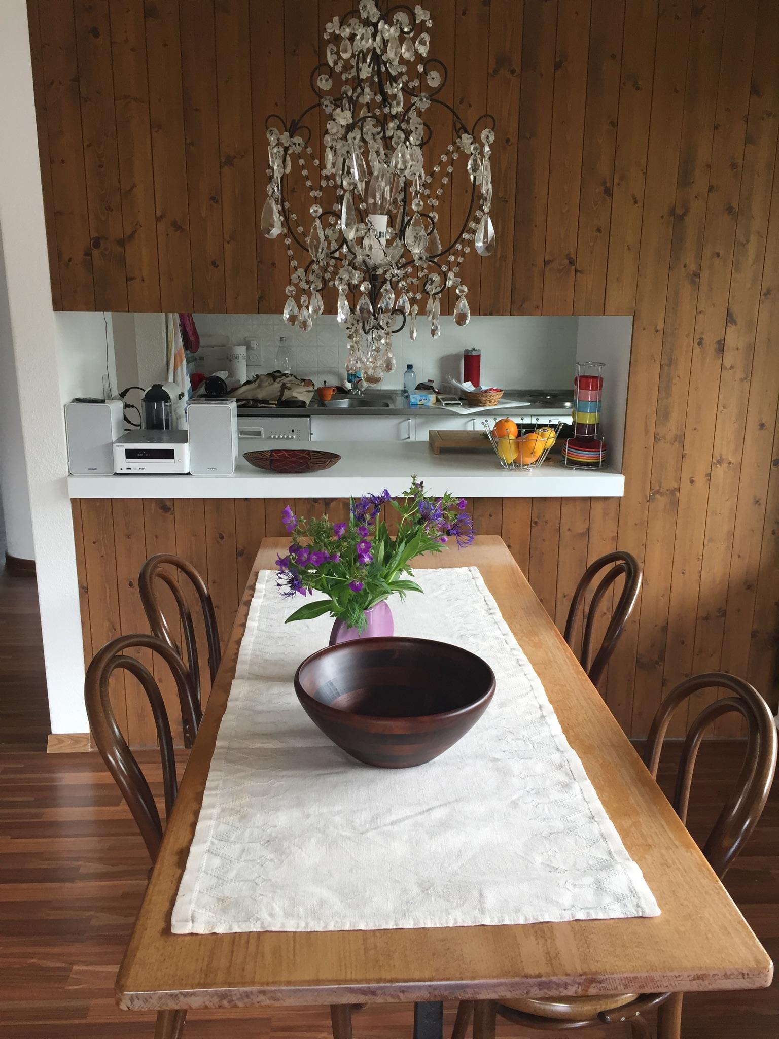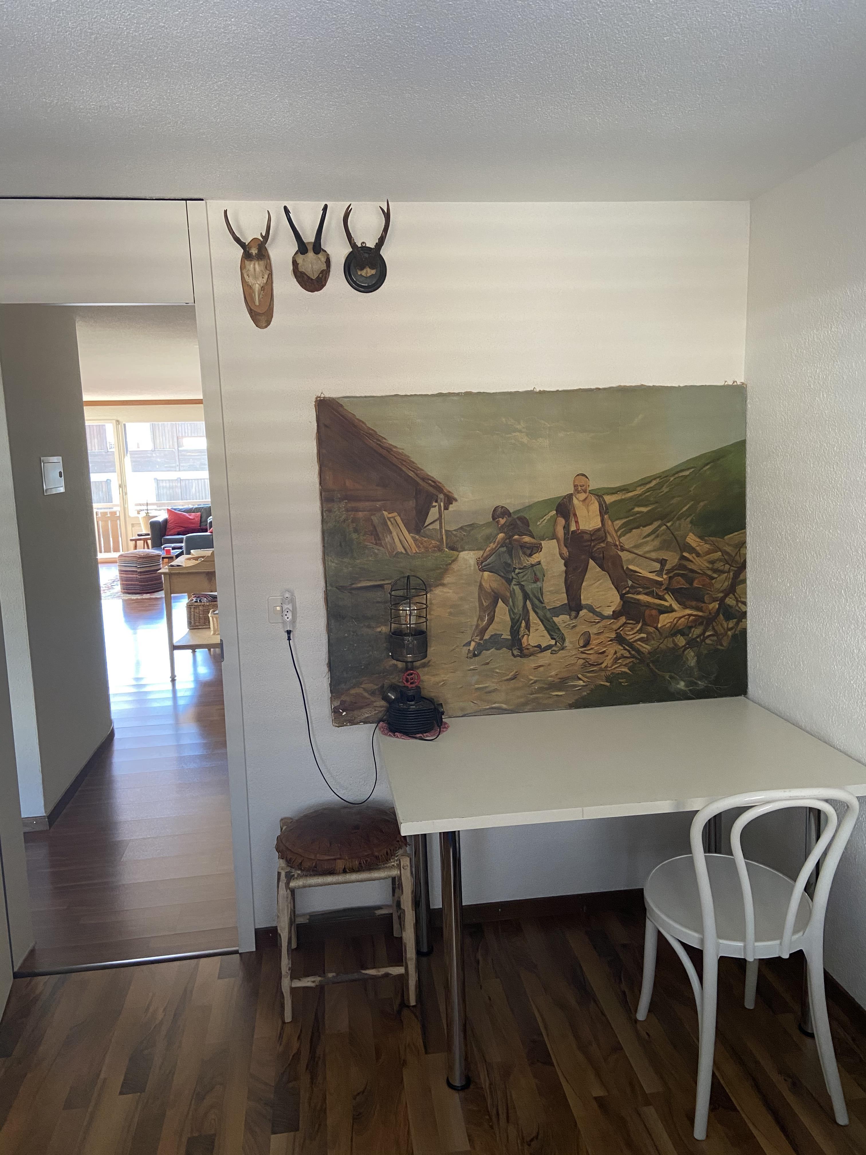 Sonnige, helle Wohnung mit viel Charme! Geschmackvoll & originell eingerichtet. Balkon & grosses Panoramafenster mit Aussicht auf die Berge. 1 grosser, lichtdurchfluteter Wohn-Essbereich, 2 Schlafzimmer, 1 offene Küche, 1 Bad/Dusche, 1 sep. WC, 1 Skiraum.