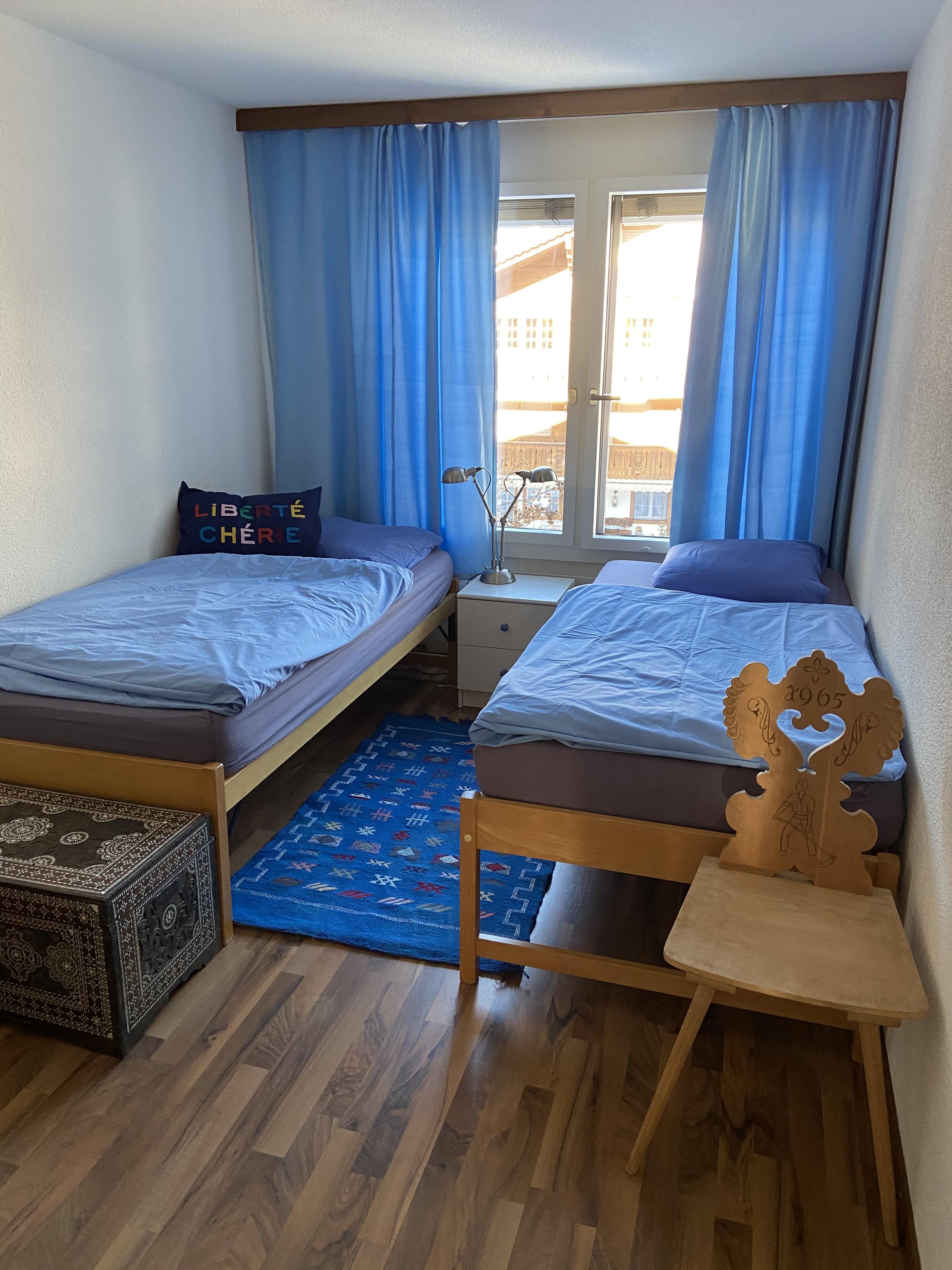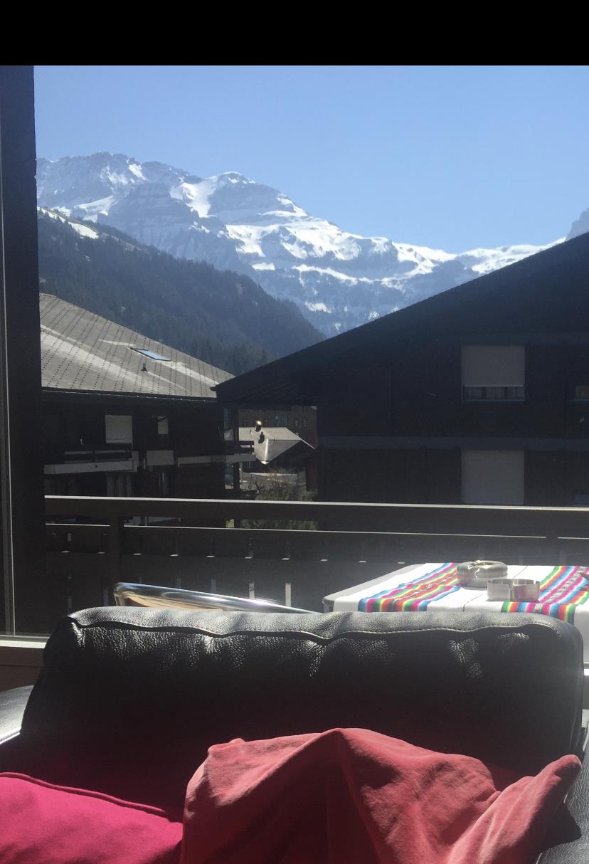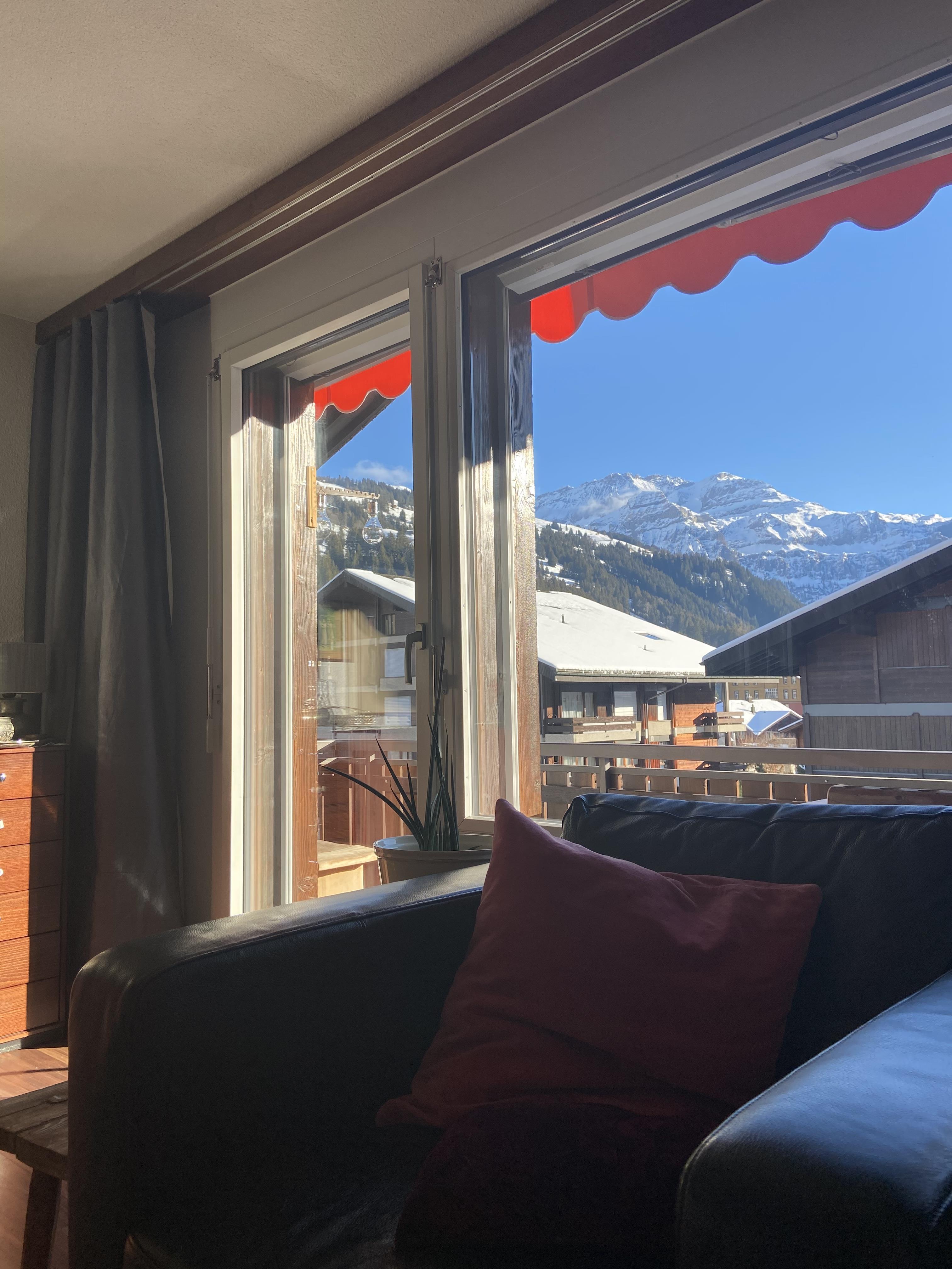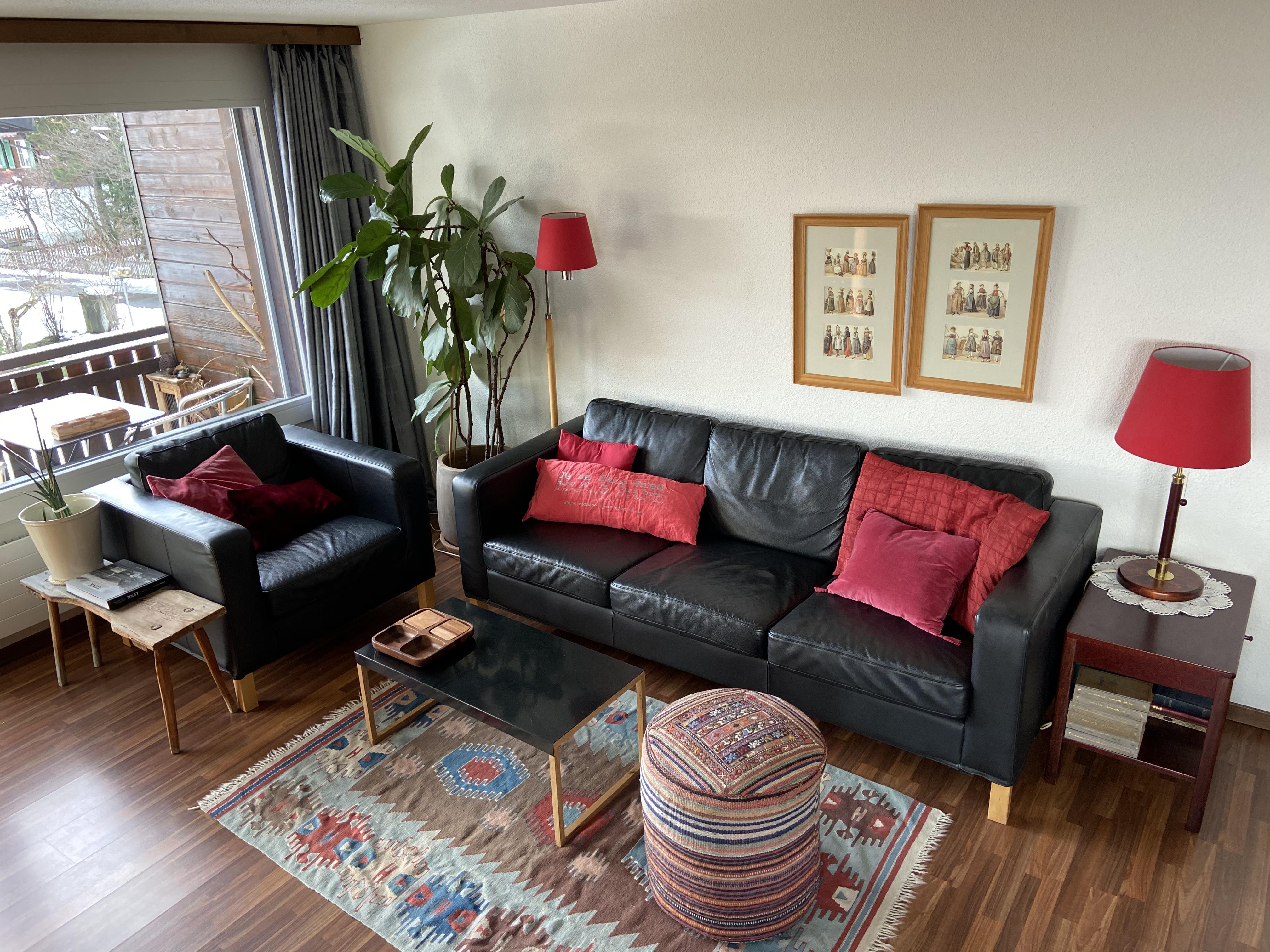 SONNIGES BIJOU - im 2.Stock in Mehrfamilien-Chalet. Dorfzentrum, doch absolut ruhig gelegen. Nähe Bahnhof, Busstation, Skiliften, Frei-/Hallenbad, Restaurants & Einkaufsmöglichkeiten.