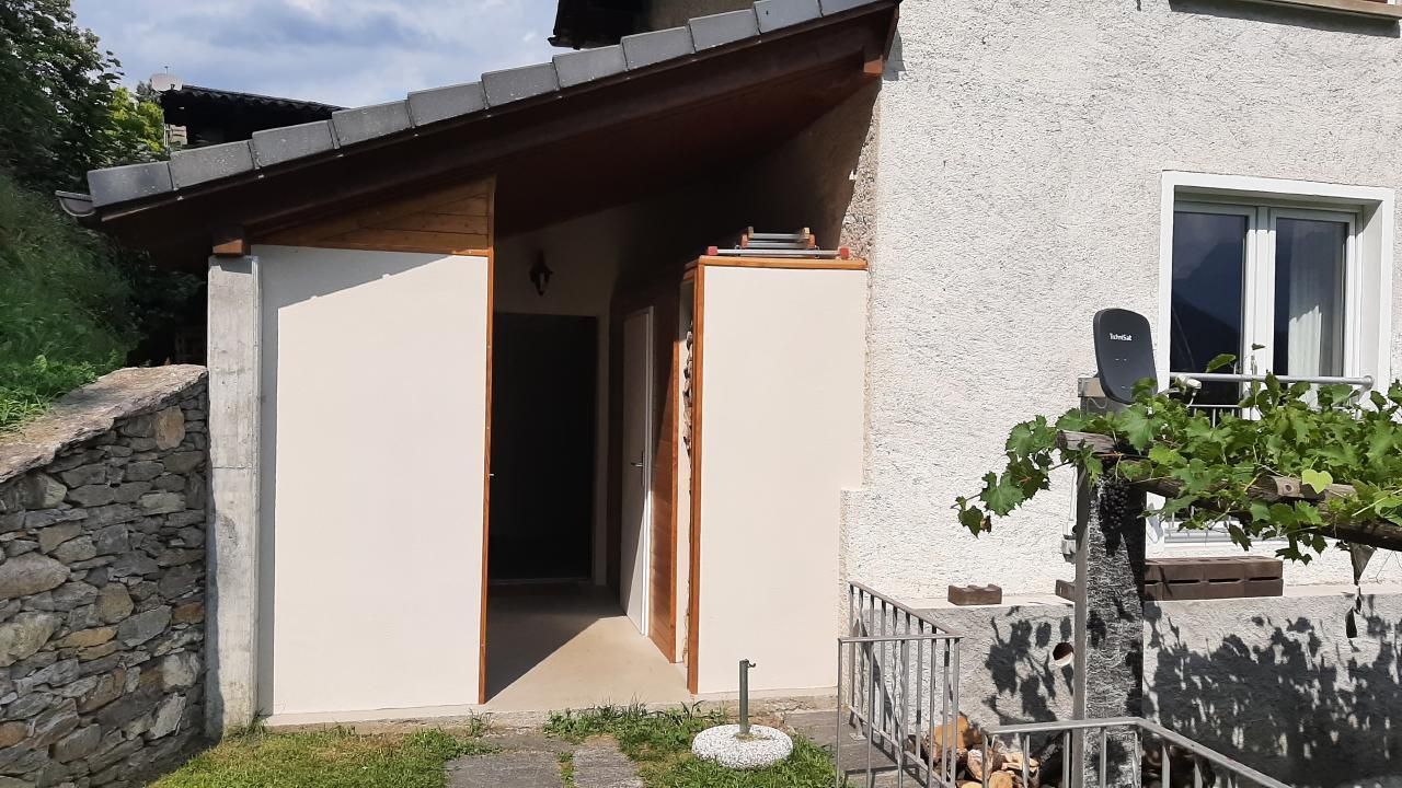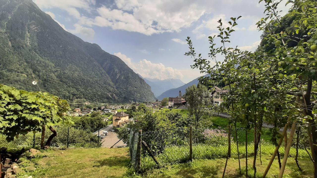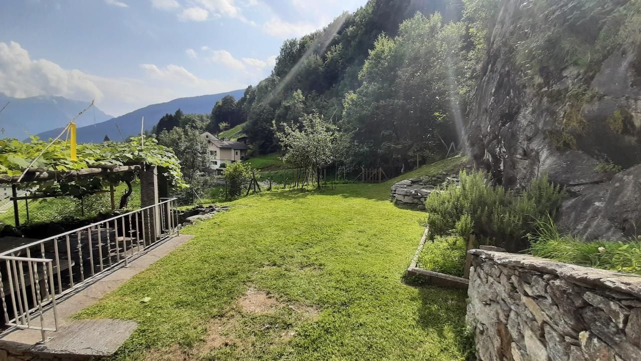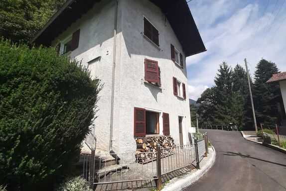 Ein komfortables und praktisches Einfamilienhaus in ruhiger und sonniger Lage am Rande des Dorfes Prugiasco (621 m ü.d.M.) in Richtung Wald, mit freiem Blick auf die umliegende Landschaft und die Berge.