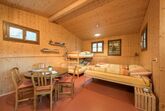 Das Chalet, ideal für bis zu 6 Personen, bietet Ihnen ein gemütliches Zuhause fern von Zuhause. Es verfügt über ein Doppelbett, 2 Kajütenbetten und eine neu ausgestattete Küche mit Elektrokochherd, Kühlschrank, Kaffeemaschine, Wasserkocher, Mikrowelle sowie einer kompletten Ausstattung mit Pfannen, Besteck, Geschirr und mehr.