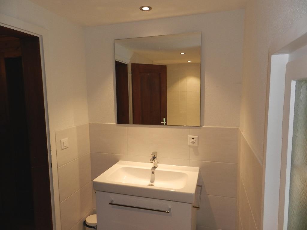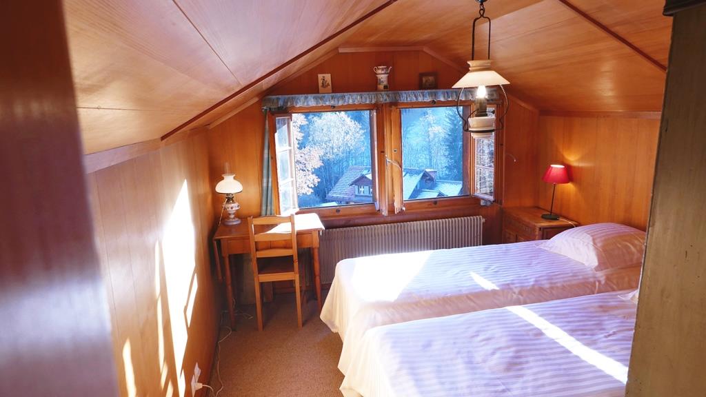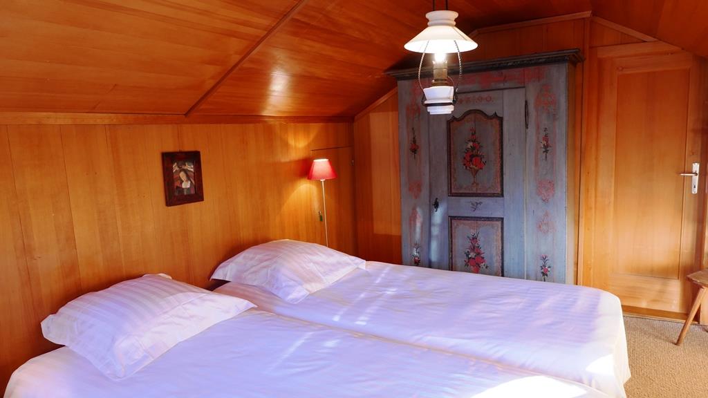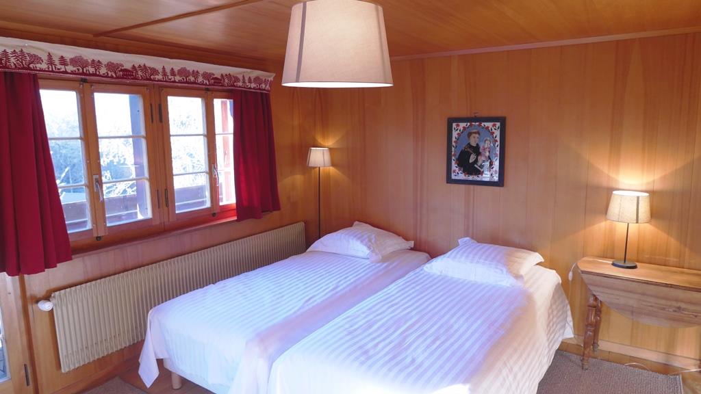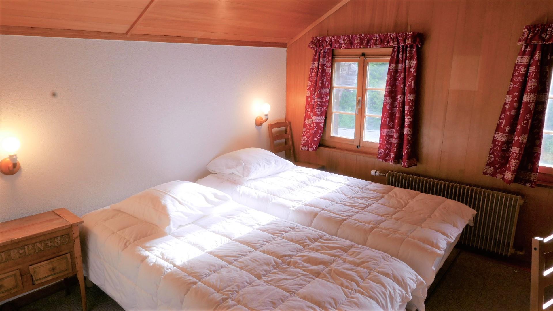 1. Stock: 1 Schlafzimmer mit 2 zusammengeschobenen Einzelbetten (2x90x200cm). 1 Schlafzimmer mit 1 Grand-Lit (160x200cm). 2 Schlafzimmer mit je 1 Einzelbett (1x90x200cm, 1x90x190cm). 1 Badezimmer mit Badewanne/WC. 1 Badezimmer mit Dusche (ohne WC). 1 separates WC.