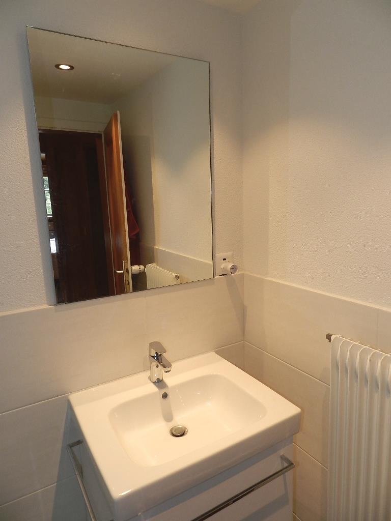 Hochparterre (Eingang): Grosses und helles Wohn-/Esszimmer mit Holztisch, Ecksofa, TV, DVD-Player und Radio. Küche u. a. ausgestattet mit Geschirrspüler, Kapsel-Kaffeemaschine (Nespresso), Filterkaffeemaschine, Fondue- & Raclette-Set, Toaster und diversen weiteren Küchengeräten, zudem kleiner Tisch und Terrassenzugang. Separates WC.