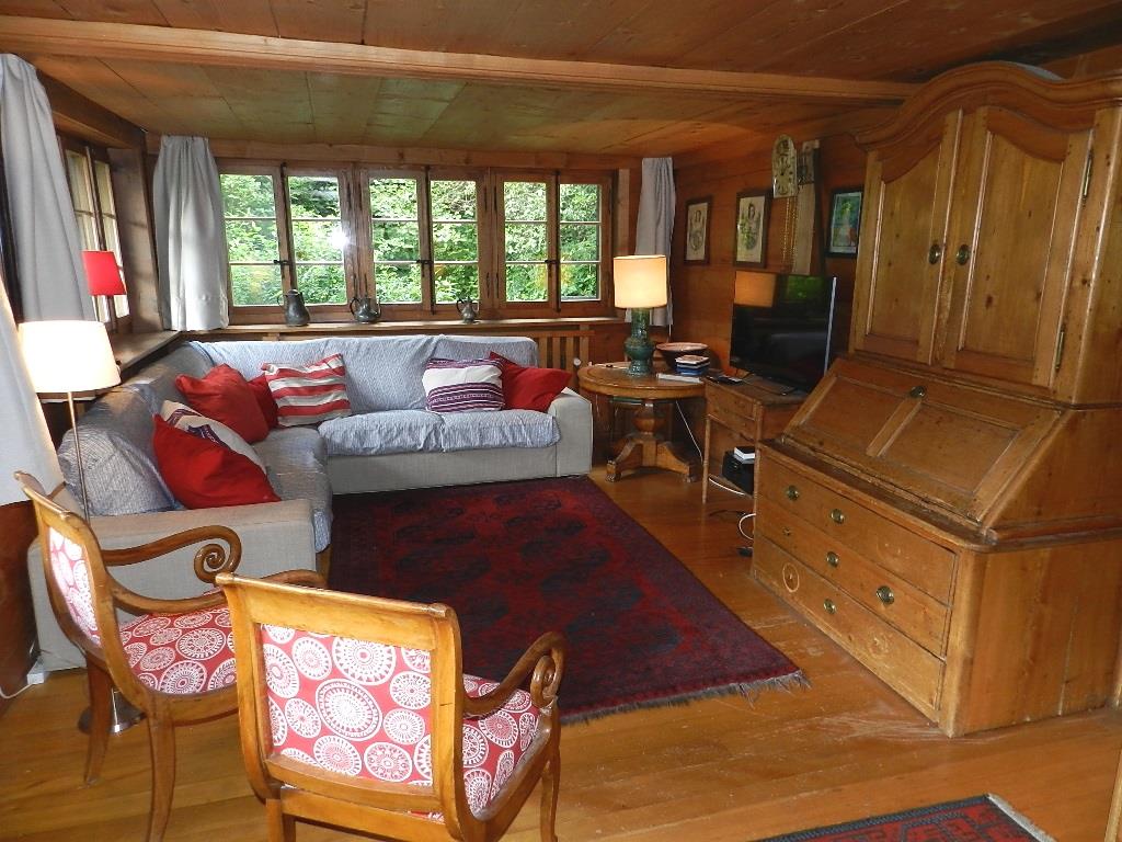 Alleinstehendes Chalet mit 7 Zimmern (ca. 240m2 auf 3 Etagen). Möblierte Terrasse im Hochparterre und grosser (unmöblierter) Balkon im 1. Stock. Waschküche mit Waschmaschine. 3 ungedeckte Parkplätze stehen an der Lauenenstrasse zur Verfügung. Zugang zum Chalet nur über Treppen möglich (knapp 60 Treppenstufen vom Parkplatz bis zum Chaleteingang). 3 Gehminuten vom Dorfzentrum Gstaad entfernt.