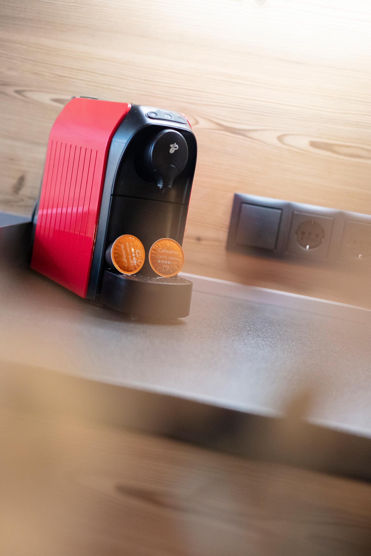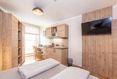 Gemütliches und mit Liebe zum Detail eingerichtetes Einraumappartement mit Dusche und WC, Vorraum, Doppelbett (1,60 m breit), Kochnische und Essbereich sowie Flat-TV und Safe, ohne Balkon. Die Kochnische verfügt über ein Ceran-Kochfeld, Mikrowelle, Kühlschrank mit Gefrierfach, Wasserkocher, Cafissimo Kapsel-Kaffeemaschine;