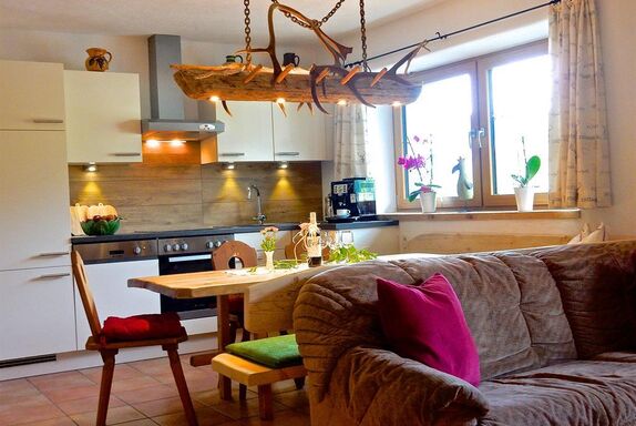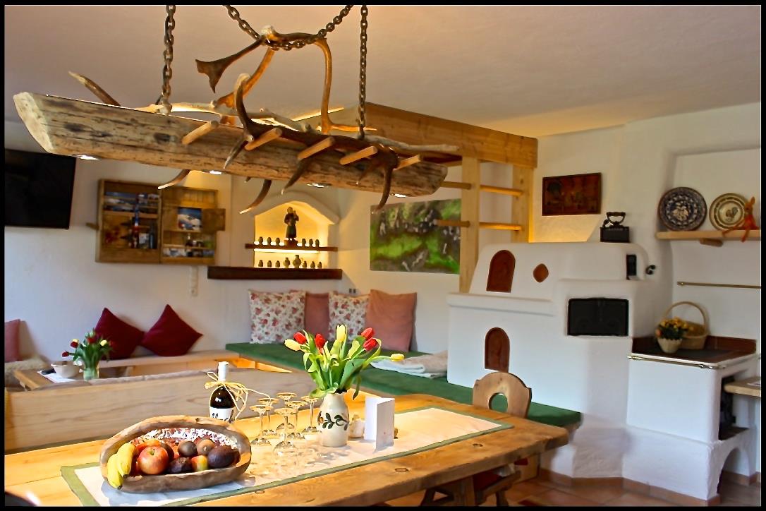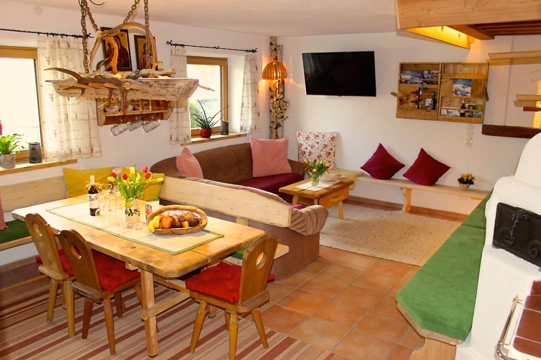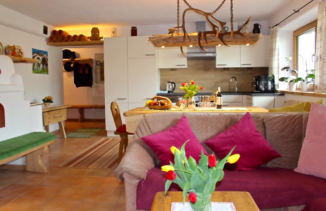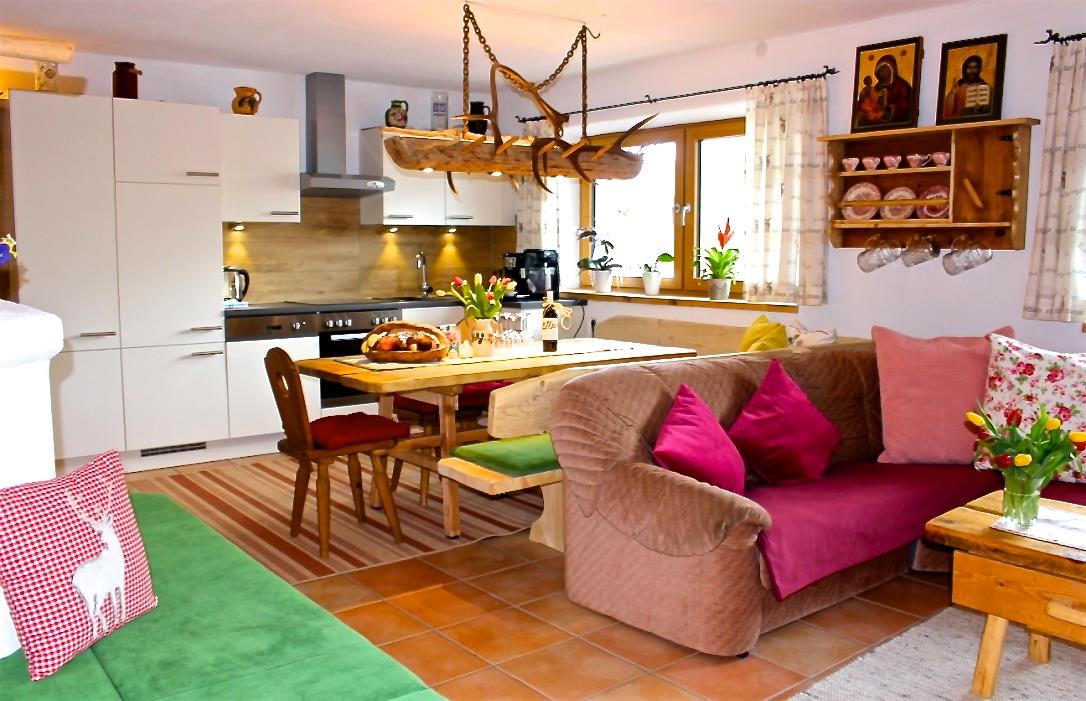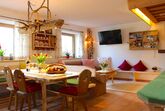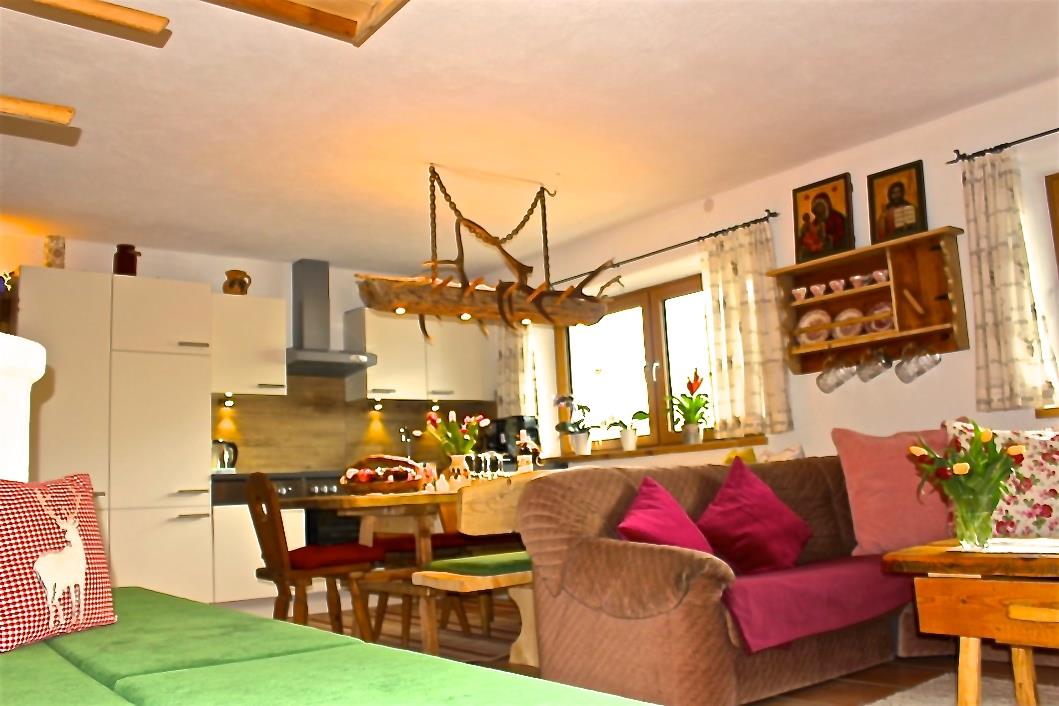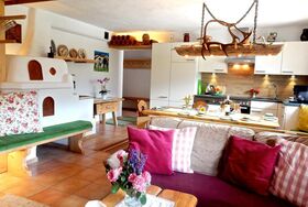 Das Apartment (105 m²) besteht aus einer großen Wohnküche mit Delonghi Vollautomatkaffeemaschine- Bauernofen und gemütlicher Kuschelecke, 2 Schlafzimmer (1 Dreibett, 1 Doppelzimmer mit Stockbett), 2 Badezimmer mit Dusche/ WC, Eingangsbereich mit Schischuhtrockner, Garten mit Grillstelle, WLAN kostenlos