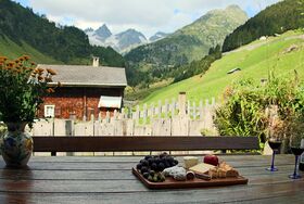 Von der Küche aus gelangen Sie durch eine Glastür ins Freie. Auf dem Sitzplatz steht ein massiver Gartentisch, der zu gemütlichem Dasein einlädt. Von dort zeigt sich das Bergpanorama mit den Fünffingerstöcke am Schönsten. Sollte die Sonne zu stark scheinen, kann die Markise ausgefahren werden.