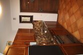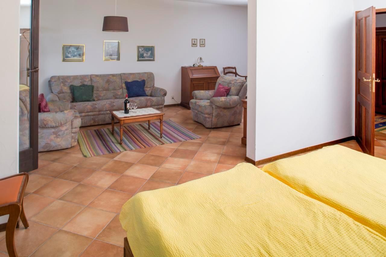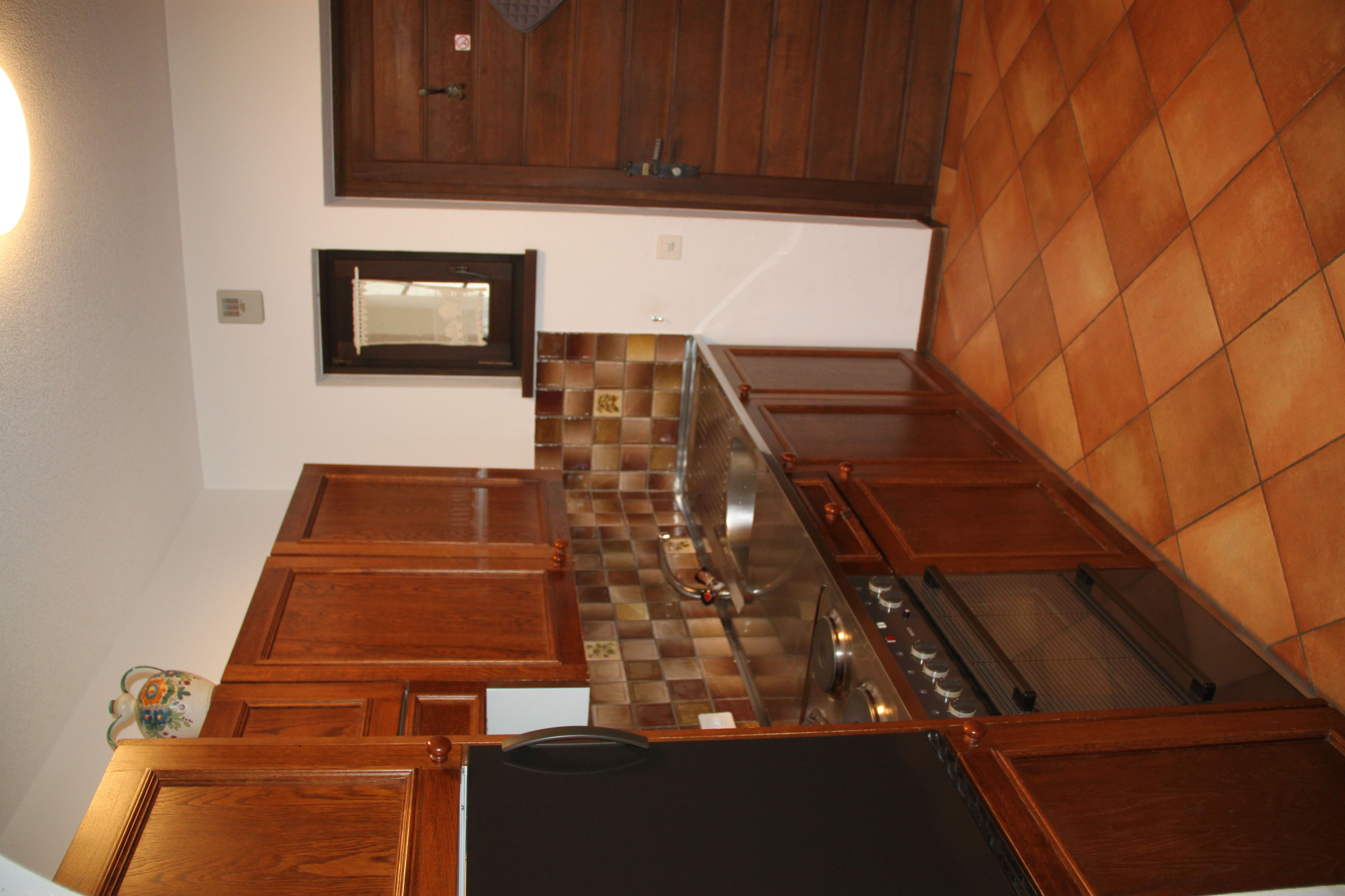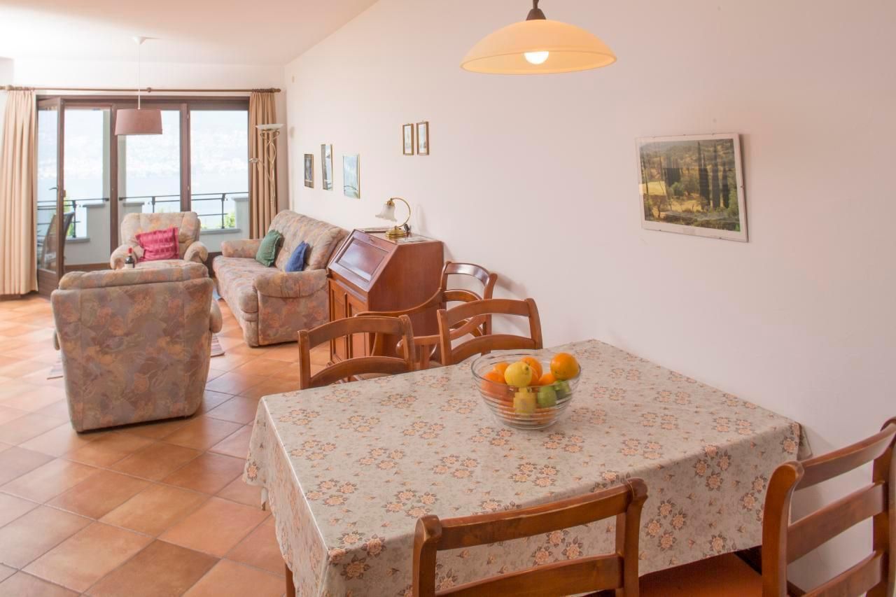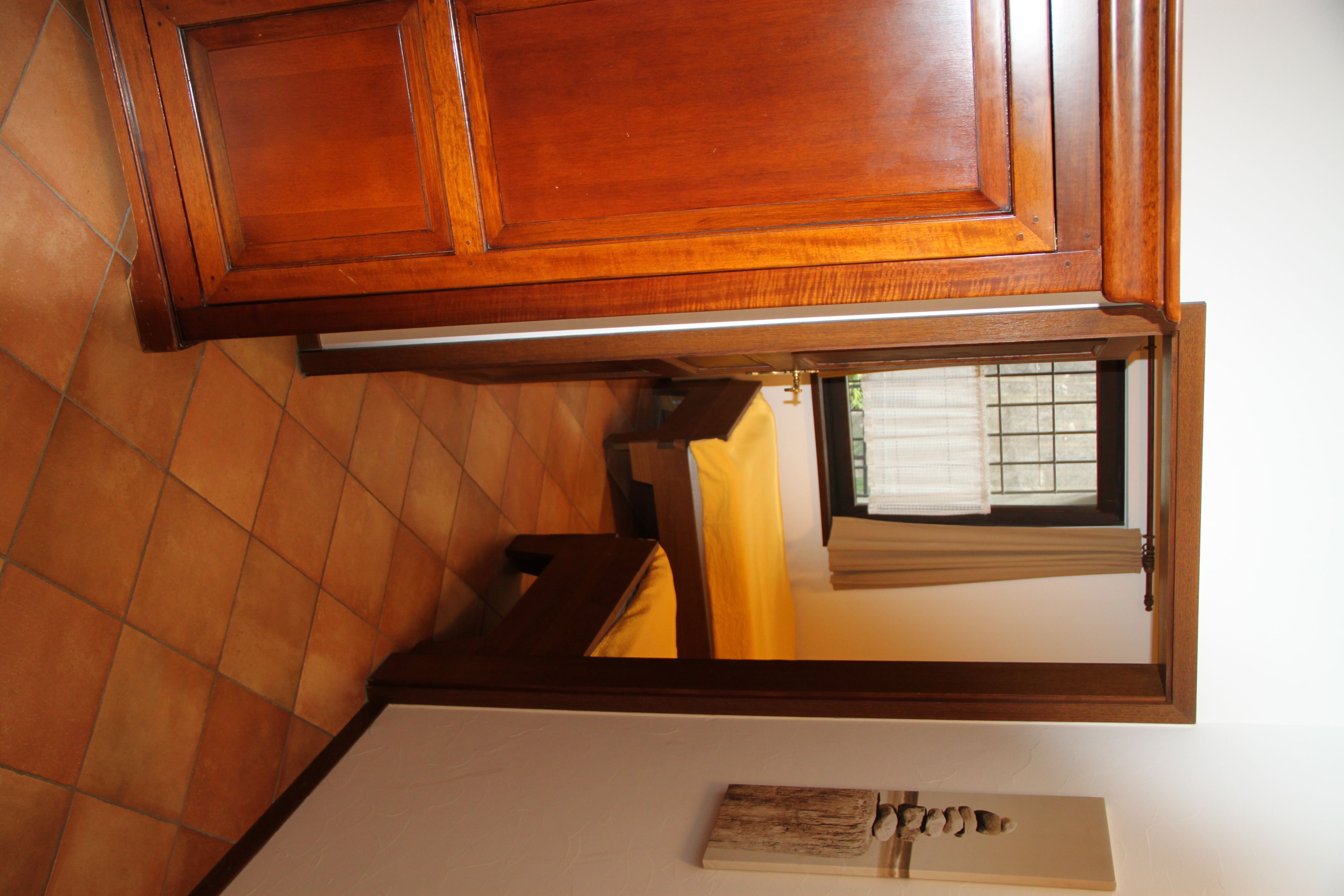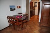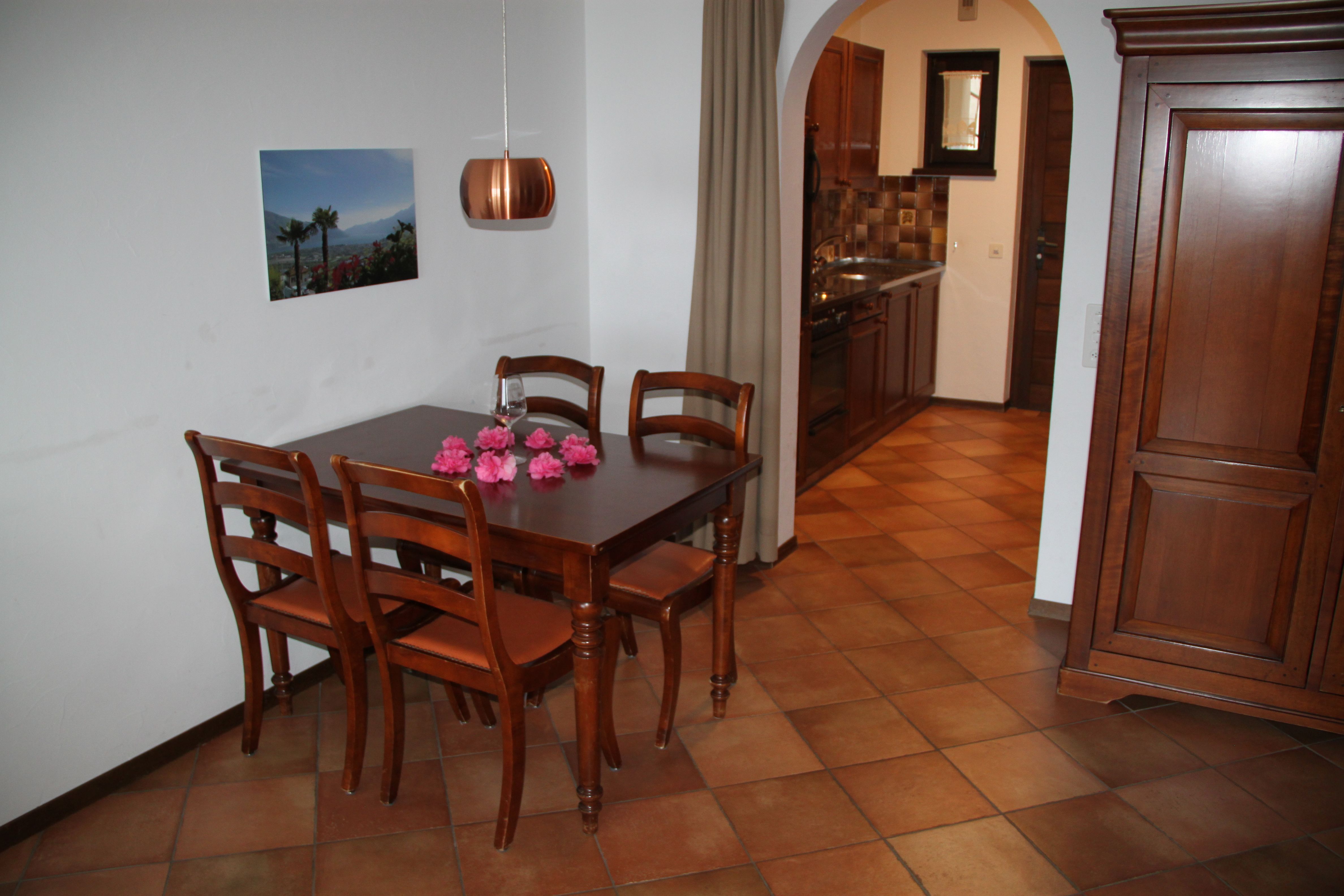 Die im traditionellen Tessiner Stil eingerichtete Wohnung mit Steinplattenboden und Kastanien Massivholz Mobiliar, ist in warmen Beige- und Erdfarbtönen gehalten.