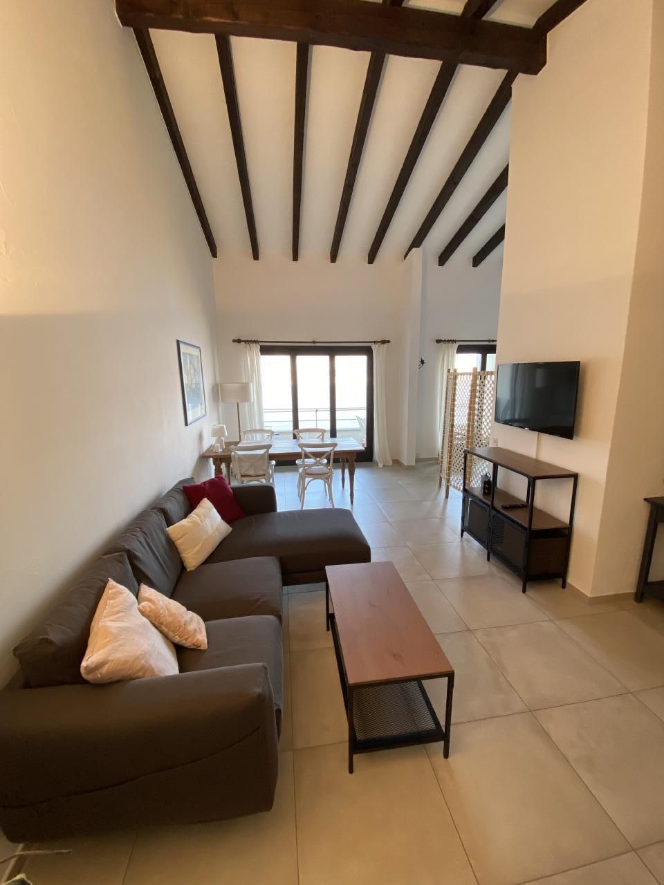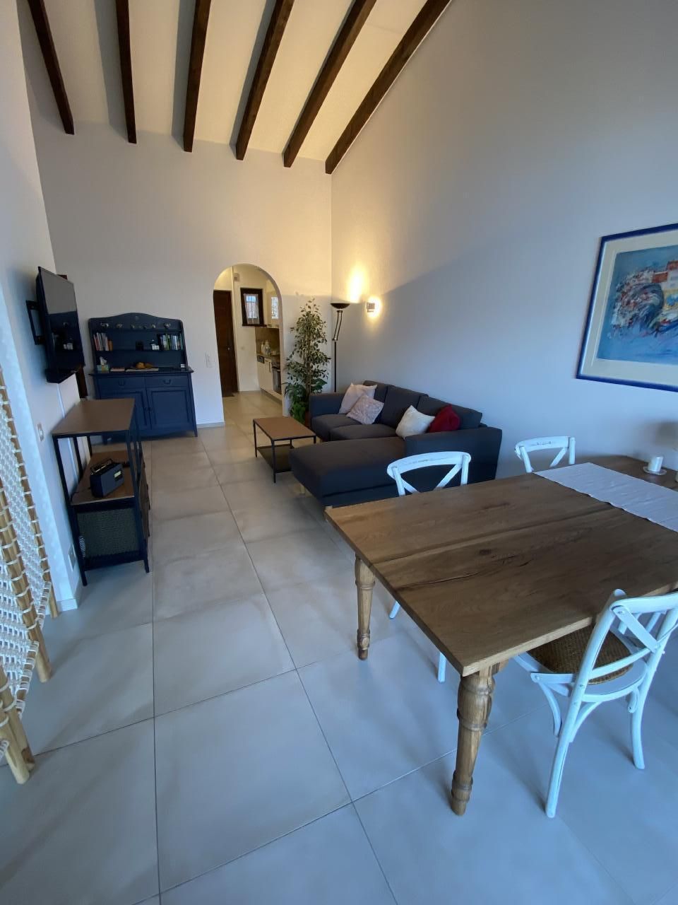 Wohnzimmer mit offener Schlafnische mit 1 Doppelbett (2 Matratzen)