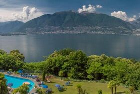 Für den zauberhaften Ausblick über den Lago Maggiore brauchen Sie nicht einmal auf den grossen Balkon zu gehen, Sie geniessen direkt aus dem Doppelbett freie Sicht über den See.